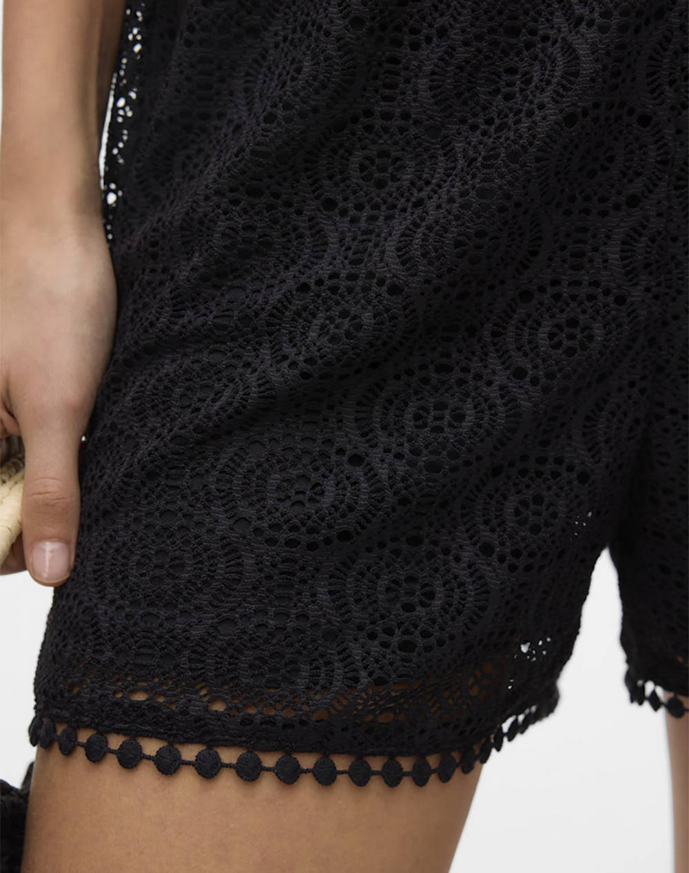 Γυναικείο σορτς από δαντέλα, μονόχρωμο, με κανονική εφαρμογή, με ελαστική μέση και πον πον στο τελείωμα. (Σύνθεση: 95% Ανακυκλωμένος πολυεστέρας, 5% Ελαστάνη)