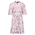Γυναικείο κοντό φόρεμα, σε κανονική γραμμή, με κοντά φουσκωτά μανίκια, γιακά πουκαμίσου και ζώνη ίδιας ύφανσης. (Σύνθεση: 100% Οργανικό βαμβάκι)