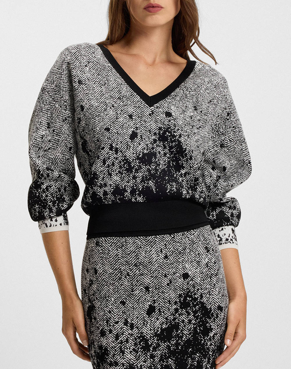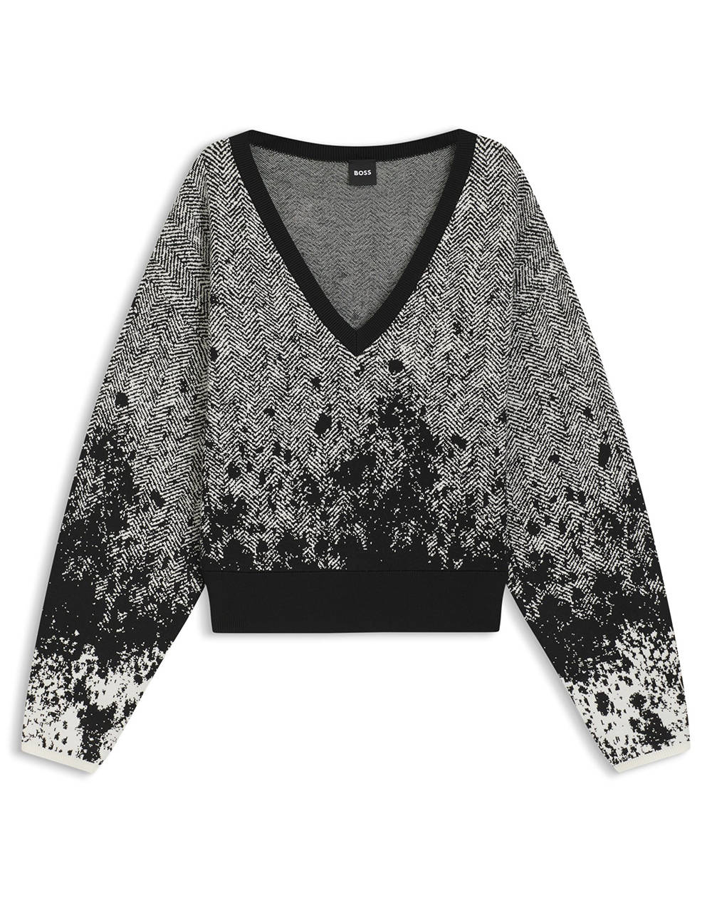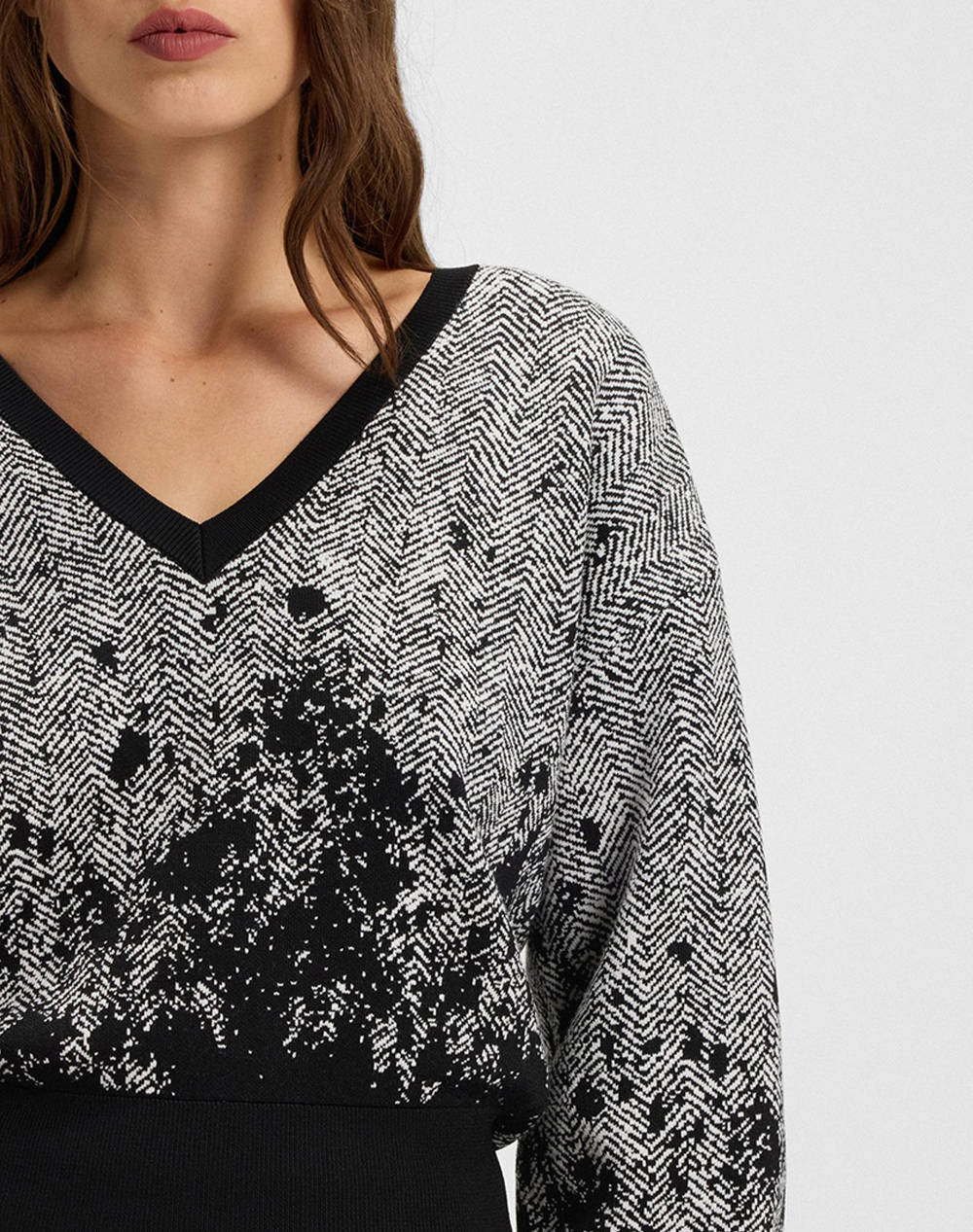 Γυναικείο crop πουλόβερ, σε κανονική γραμμή, μακρυμάνικο, με ελαστικότητα και "V" λαιμόκοψη. (Σύνθεση: 77% Βισκόζη, 13% Πολυαμίδιο, 8% Πολυεστέρας, 2% Ελαστάνη)