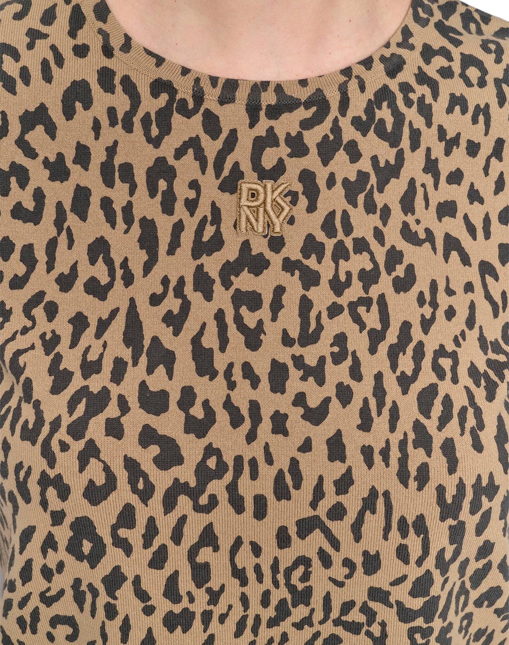 Γυναικεία μπλούζα, σε κανονική γραμμή, κοντομάνικη, με στρογγυλή λαιμόκοψη και animal print μοτίβο. (Σύνθεση: 73% Βαμβάκι, 27% Νάιλον)