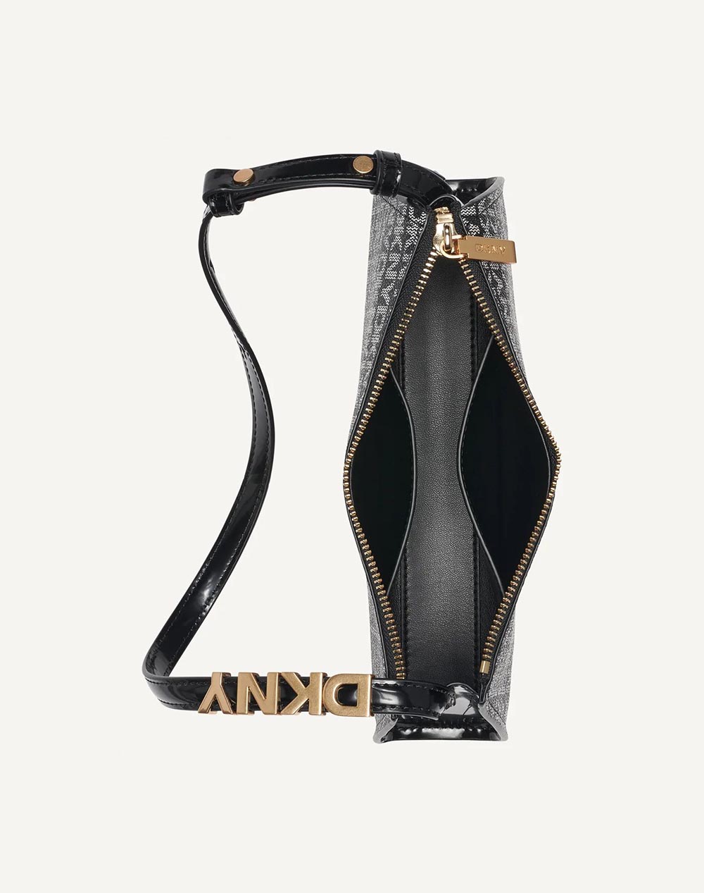 Γυναικεία τσάντα ώμου, με all over logo print, κλείσιμο με φερμουάρ και λουράκι ώμου με λεπτομέρεια μεταλλικό λογότουπο DKNY. Διαστάσεις: 26 x 11.5 x 6εκ. (Σύνθεση: PVC με επικάλυψη πολυουρεθάνης)