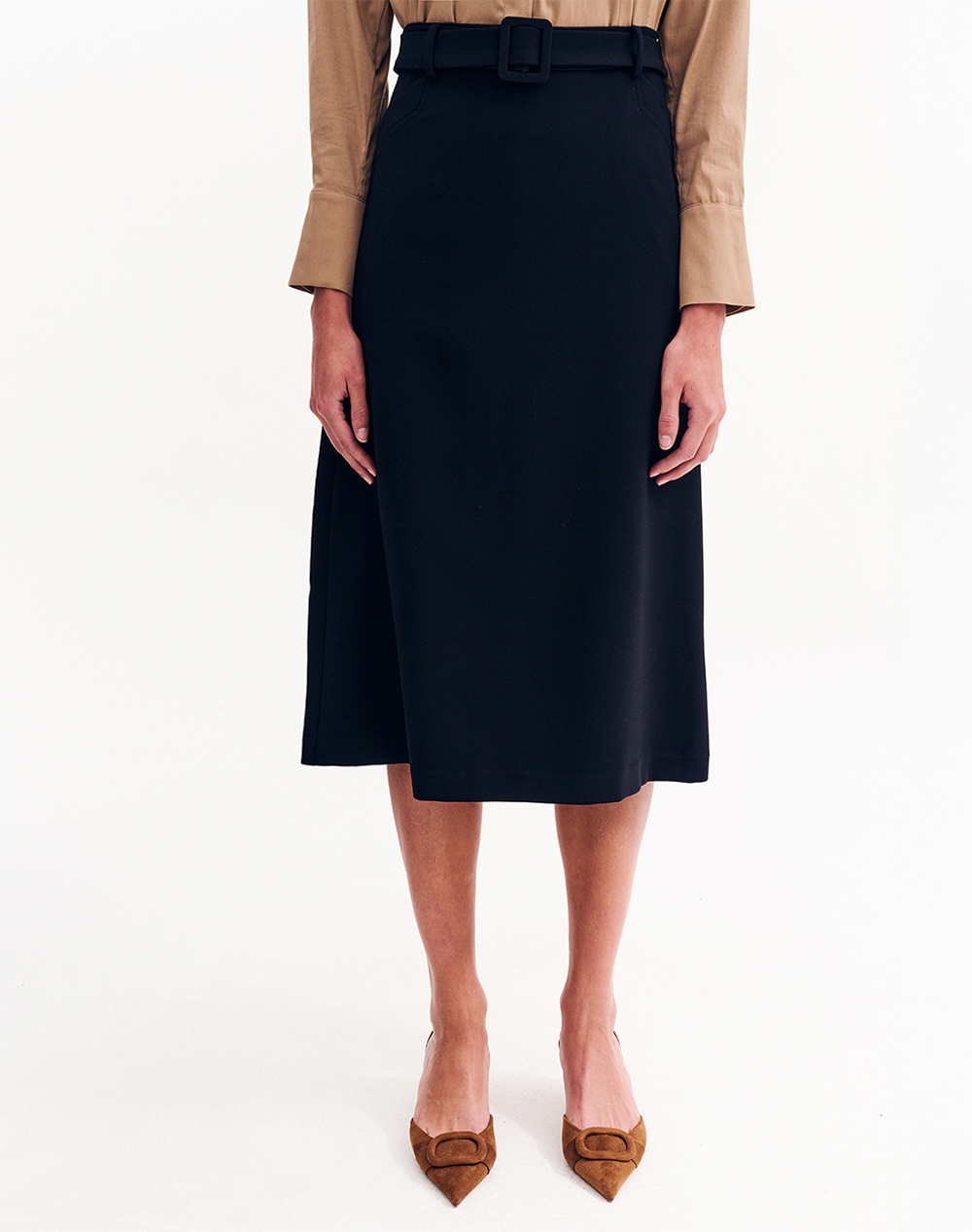 Γυναικεία midi φούστα, σε γραμμή Α, με ζώνη ίδιας ύφανσης στη μέση και κλείσιμο με φερμουάρ στην πίσω όψη. (Σύνθεση: 62% Πολυεστέρας, 32% Rayon, 6% Σπαντέξ)
