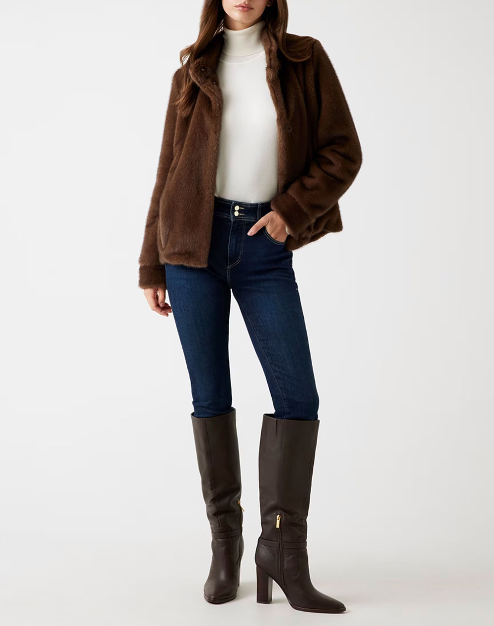Γυναικείο γούνινο jacket, σε κανονική γραμμή, με όρθιο γιακά και κλείσιμο μπροστά με κουμπιά. (Σύνθεση: 100% Πολυεστέρας)