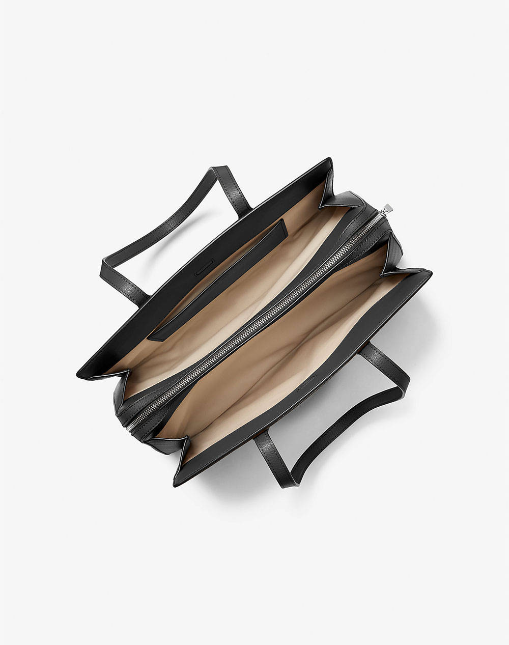 Γυναικεία τσάντα tote, τρίχωρη, με διπλές λαβές, λεπτομέρεια μπρελόκ MK και ανάγλυφο λογότυπο στη μία όψη. (Σύνθεση: 100% Δέρμα)