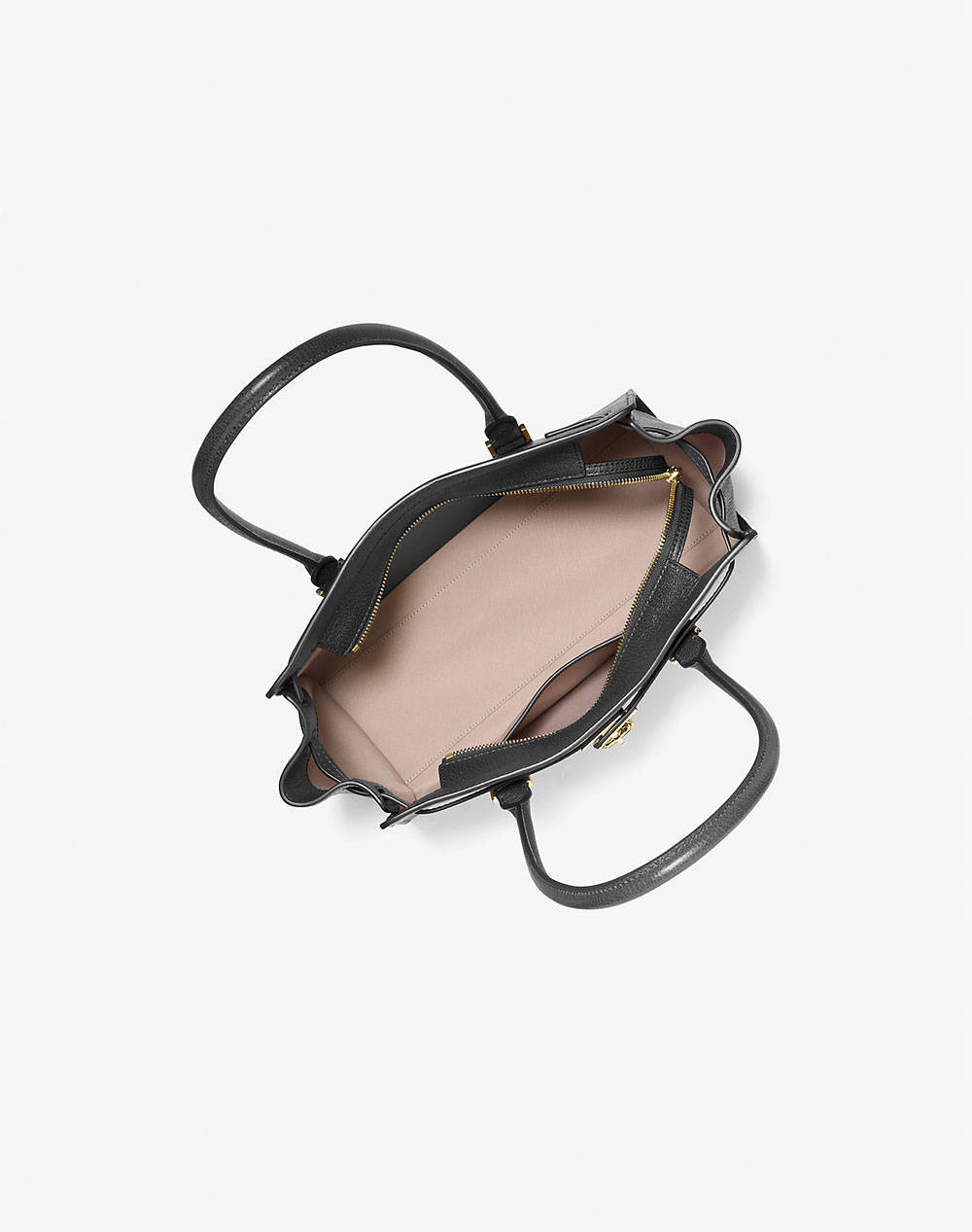 Γυναικεία τσάντα τύπου satchel, με μία κύρια θήκη που κλείνει με φερμουάρ, διπλές λαβές και λεπτομέρεια μπρελόκ. (Σύνθεση: 100% Δέρμα)