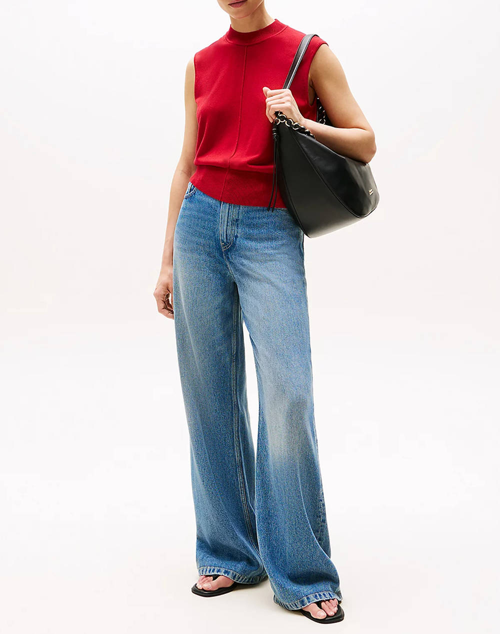 Γυναικείο αμάνικο τοπ, σε κανονική γραμμή, με λαιμόκοψη mock, διαθέτει γιακά και στρίφωμα με rib πλέξη. (Σύνθεση: 90% Lyocell, 10% Μετάξι)