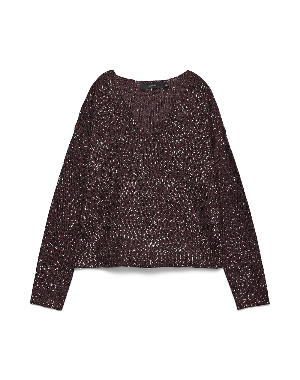 Γυναικεία πλεκτή μπλούζα, σε άνετη γραμμή, μακρυμάνικη, με παγέτες και V λαιμόκοψη.(Σύνθεση: 68% Πολυεστέρας, 32% Ακρυλικό)