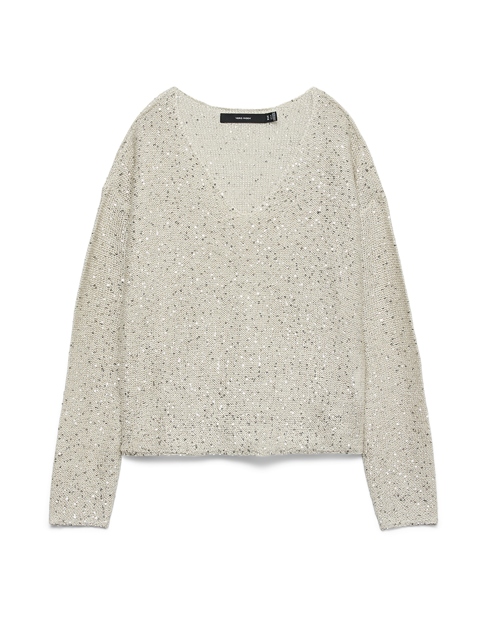 Γυναικεία πλεκτή μπλούζα, σε άνετη γραμμή, μακρυμάνικη, με παγέτες και V λαιμόκοψη.(Σύνθεση: 68% Πολυεστέρας, 32% Ακρυλικό)