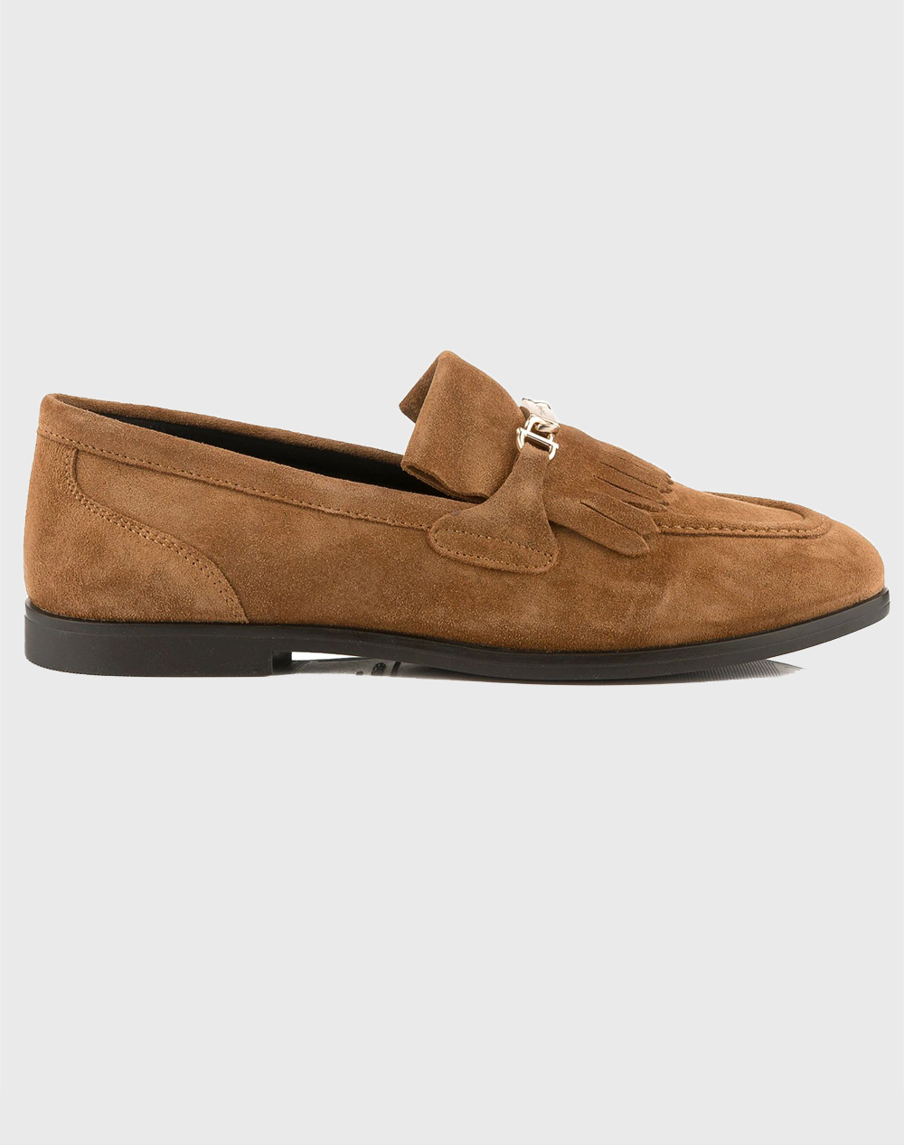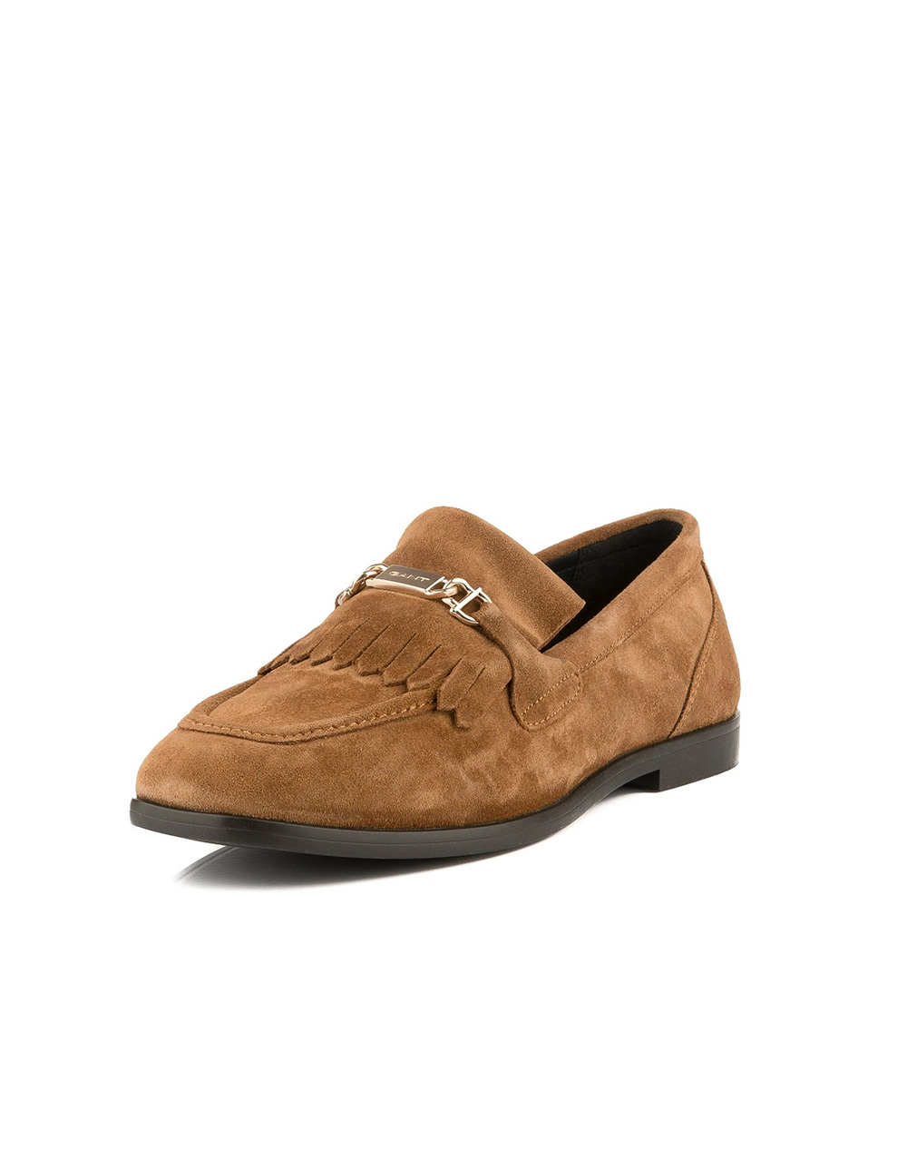 Γυναικεία loafers, με τετράγωνη μύτη, μεταλλική αγκράφα μπροστά και slip on εφαρμογή. (Σύνθεση: Δέρμα Σουέτ)