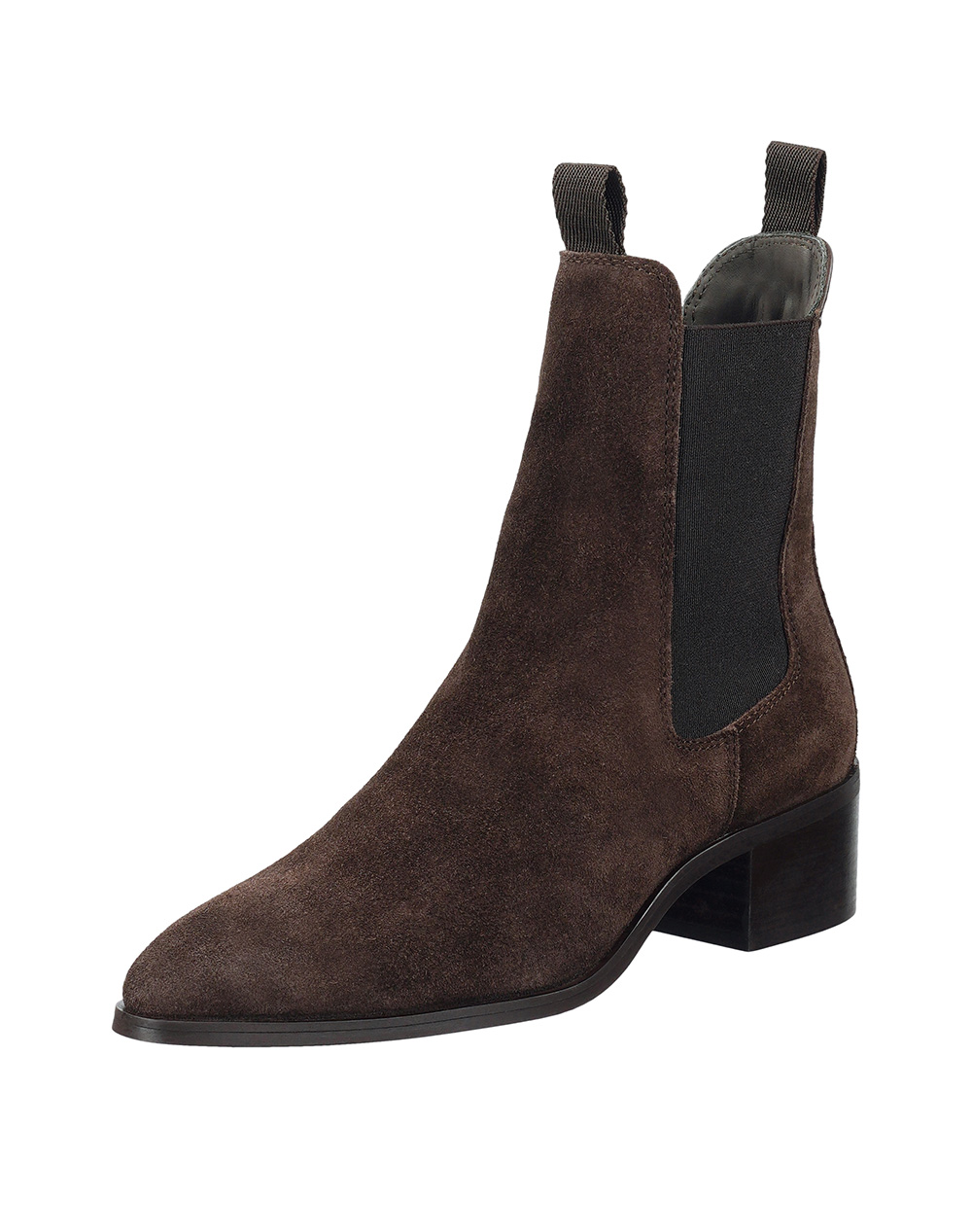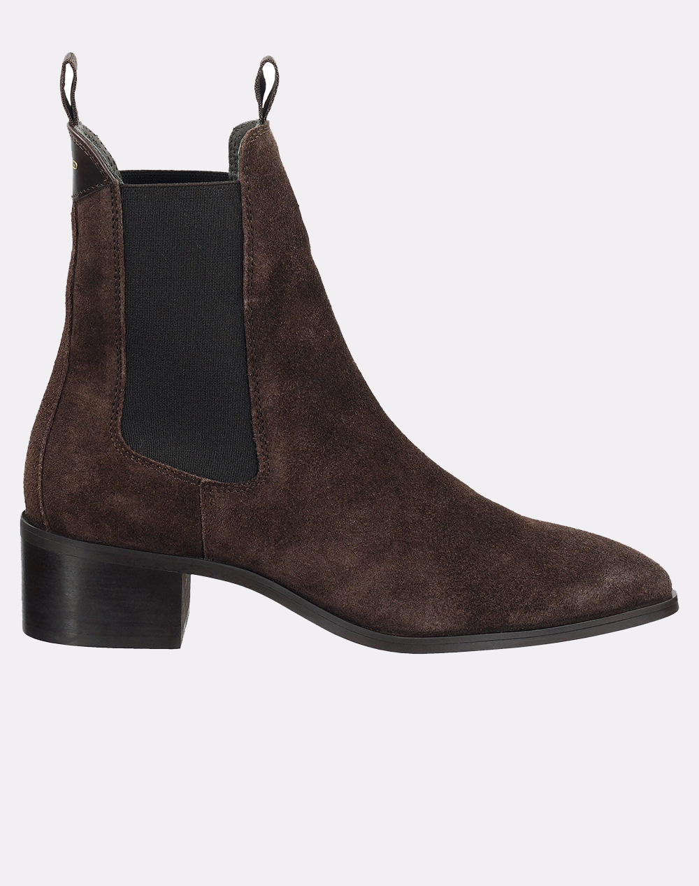 Γυναικεία μποτάκια, με μυτερή μύτη, σε στυλ Chelsea, με ελαστικά πλαϊνά και slip on εφαρμογή. (Σύνθεση: Δέρμα σουέτ)