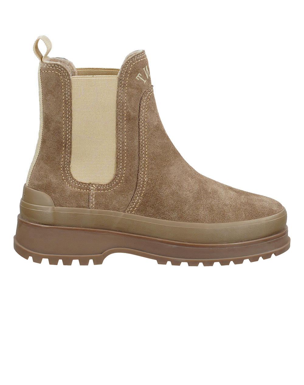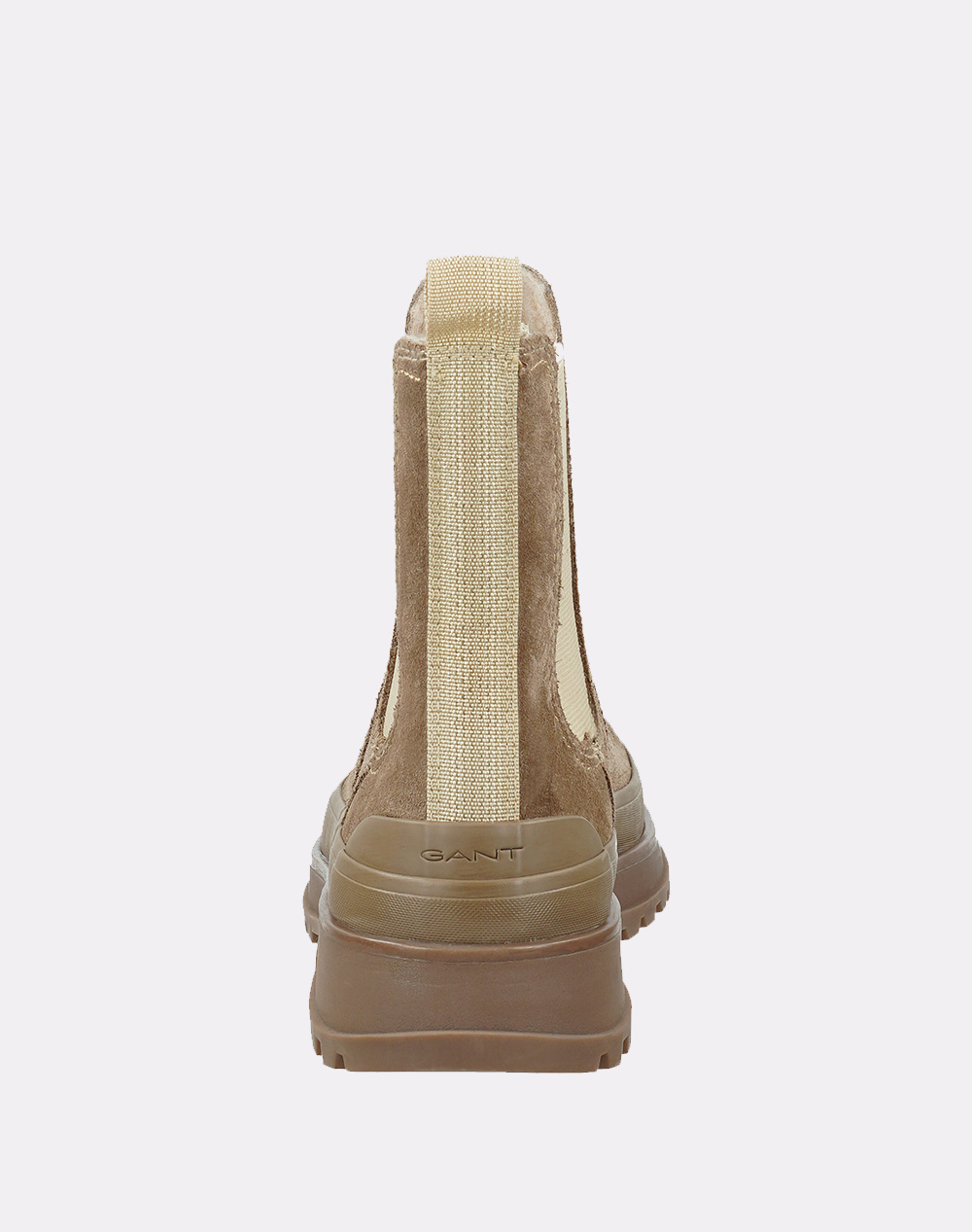 Γυναικεία μποτάκια Chelsea, με στρογγυλή μύτη, ελαστικά πλαϊνά, λεπτομέρεια λογότυπο στη φτέρνα και slip on εφαρμογή. (Σύνθεση: Δέρμα σουέτ & Ύφασμα)