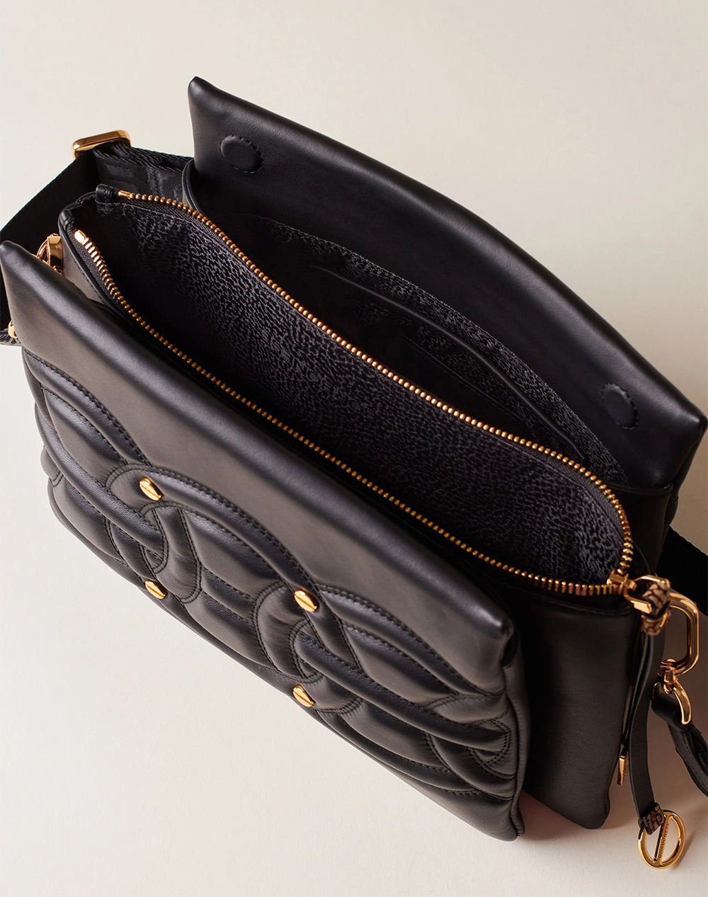 Γυναικεία τσάντα χιαστί, τρίχωρη, με τη μεσαία θήκη να κλείνει με φερμουάρ και οι δύο πλαϊνές με μαγνητικό κουμπί. Διαθέτει ρυθμιζόμενο ιμάντα ώμου. Διαστάσεις: 30 x 22 x 5εκ. (Σύνθεση: 100% Δέρμα nappa)