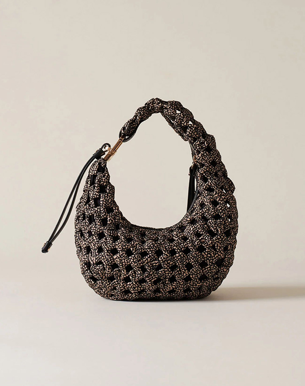 Γυναικεία τσάντα χειρός, με δερμάτινες λετπμέρειες, κλείσιμο με φερμουάρ και ανάγλυφο πλεκτό σχέδιο. (Σύνθεση: 100% Πολυεστέρας)
