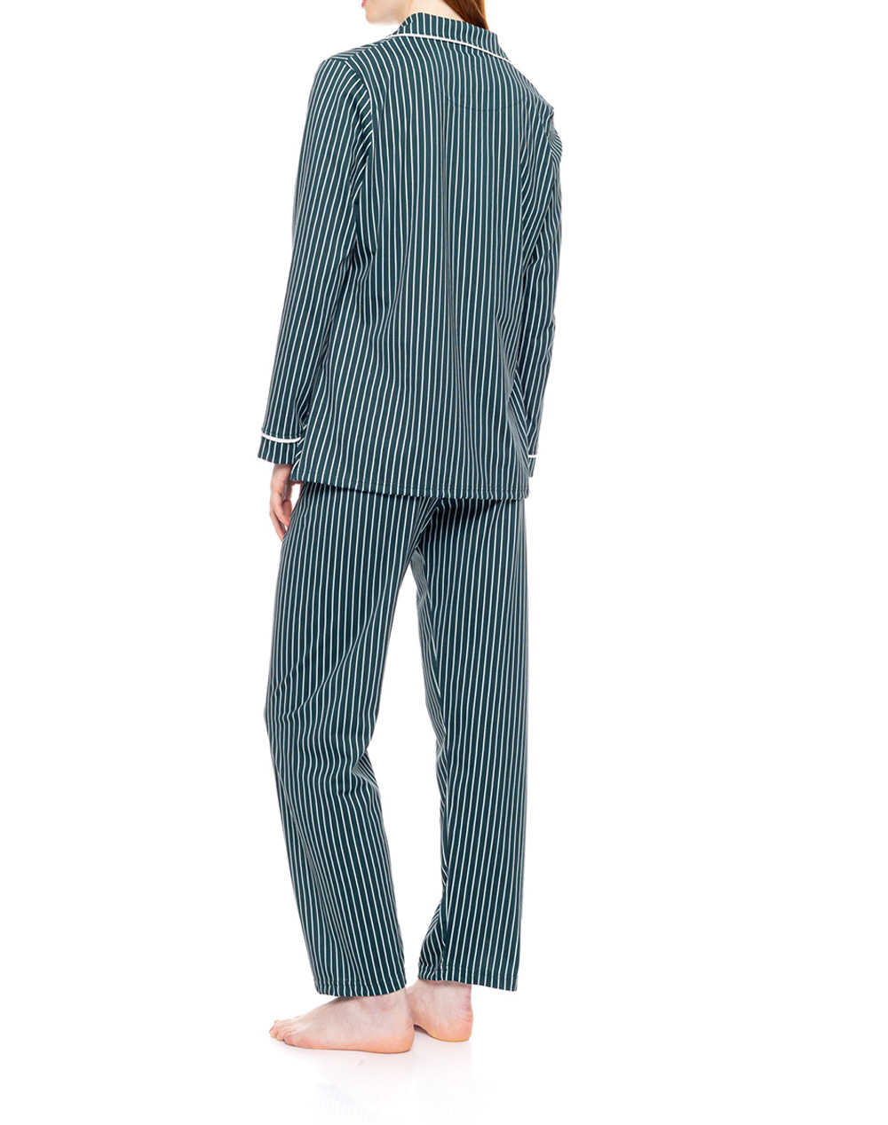 PINK LABEL PYJAMA BUTTONED GREEN FOREST STRIPES