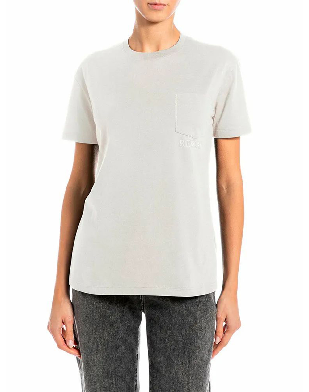 Γυναικεία μπλούζα, μονόχρωμη, κοντομάνικη, σε κανονική γραμμή, με τσέπη στο στήθος, λογότυπο και στρογγυλή λαιμόκοψη. (Σύνθεση: 100% Βαμβάκι)