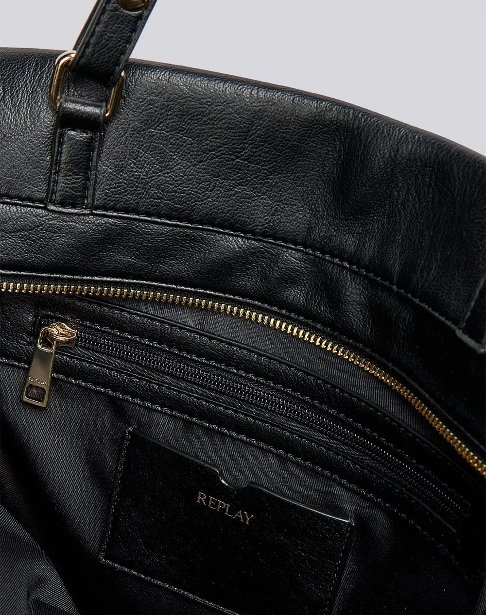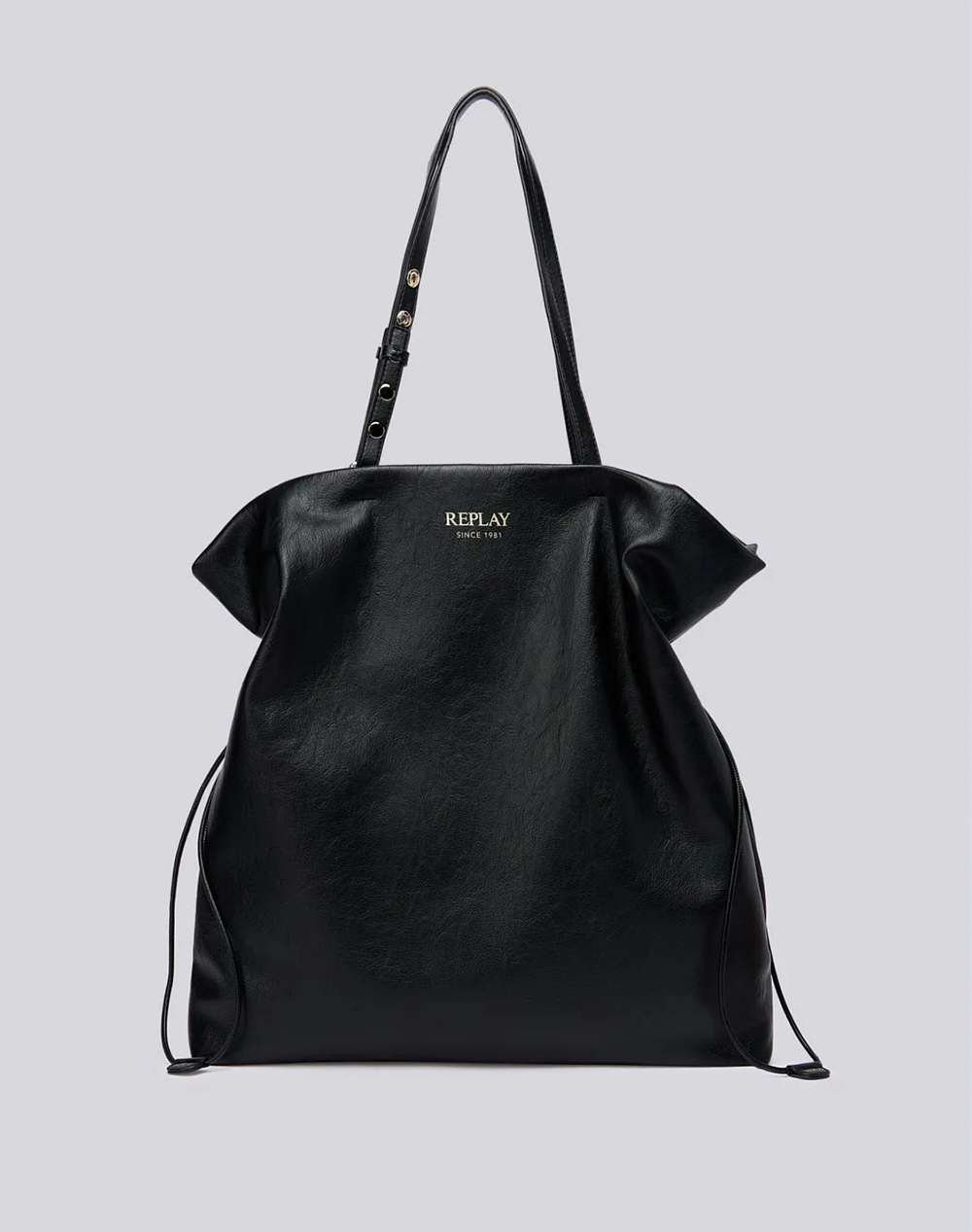 Γυναικεία τσάντα, με διπλή λαβή στο πάνω μέρος, δύο ρυθμιζόμενα κορδόνια στα πλάγια, ανάγλυφο λογότυπο Replay στο μπροστινό μέρος και κλείσιμο με φερμουάρ Διαστάσεις: 44 x48 x 7εκ. (Σύνθεση: 100% Πολυουρεθάνη)