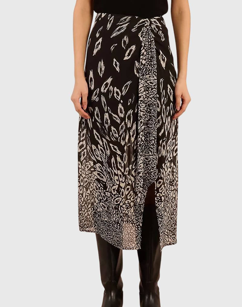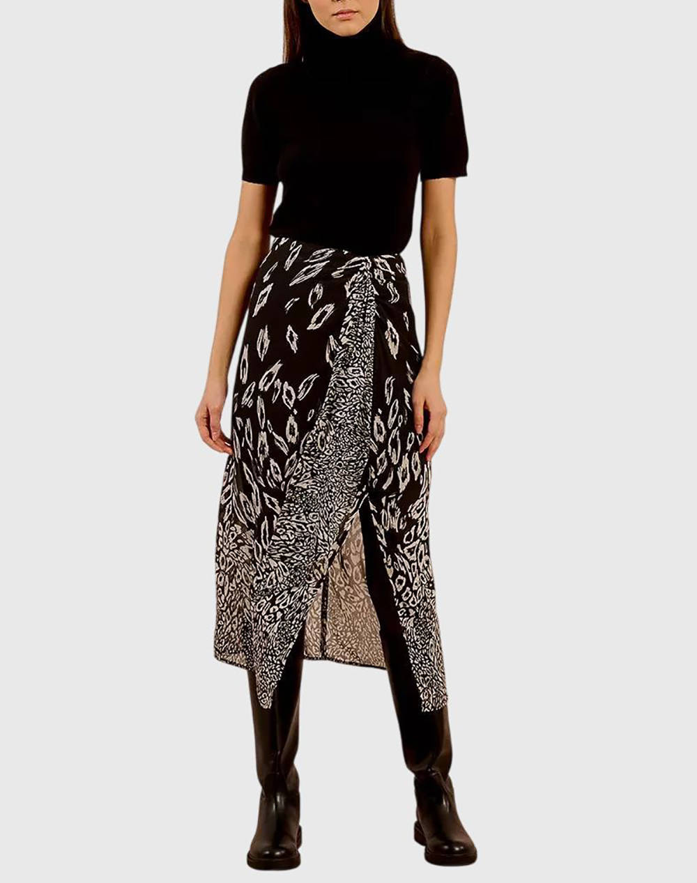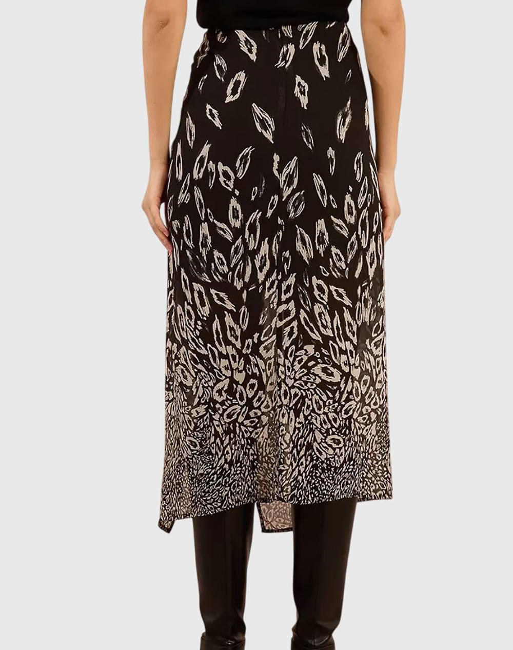 Γυναικεία φούστα, ψηλόμεση, με εμπριμέ σχέδιο και σκίσιμο στο πλάι. (Σύνθεση: 100% Πολυεστέρας)