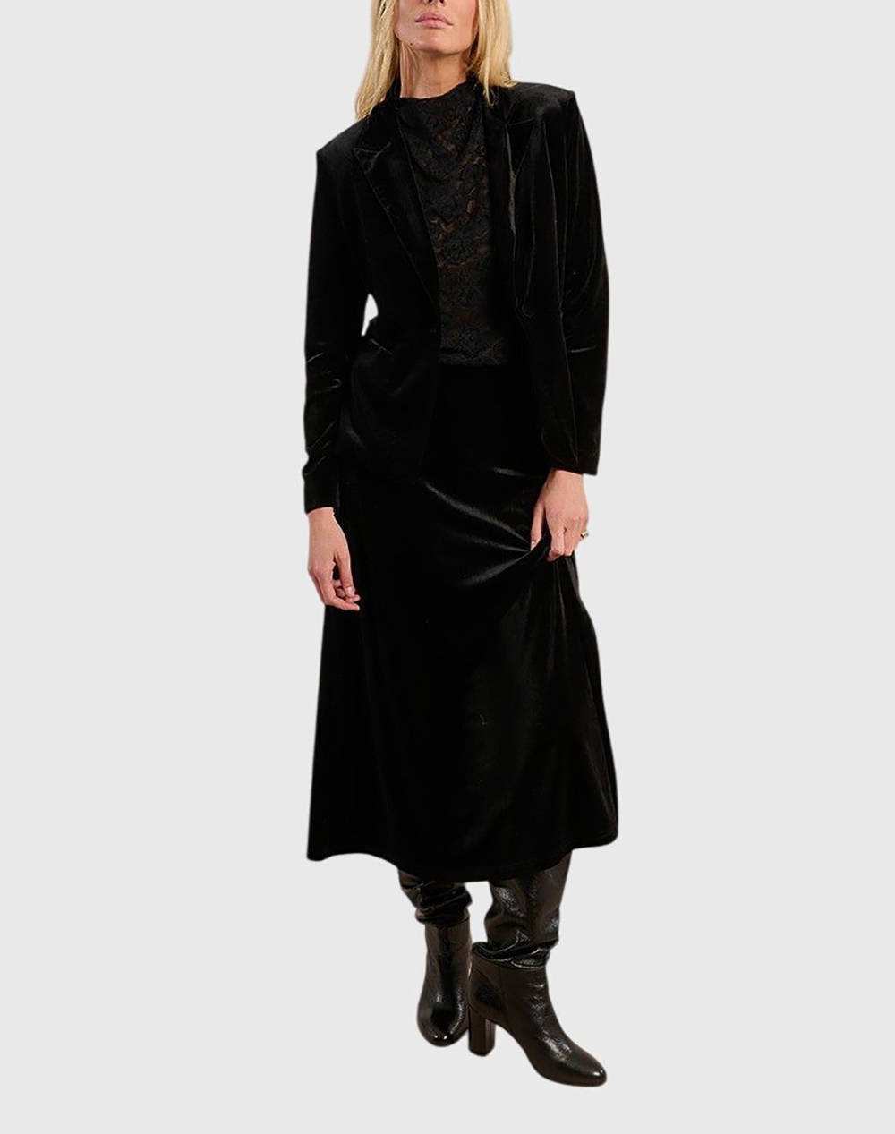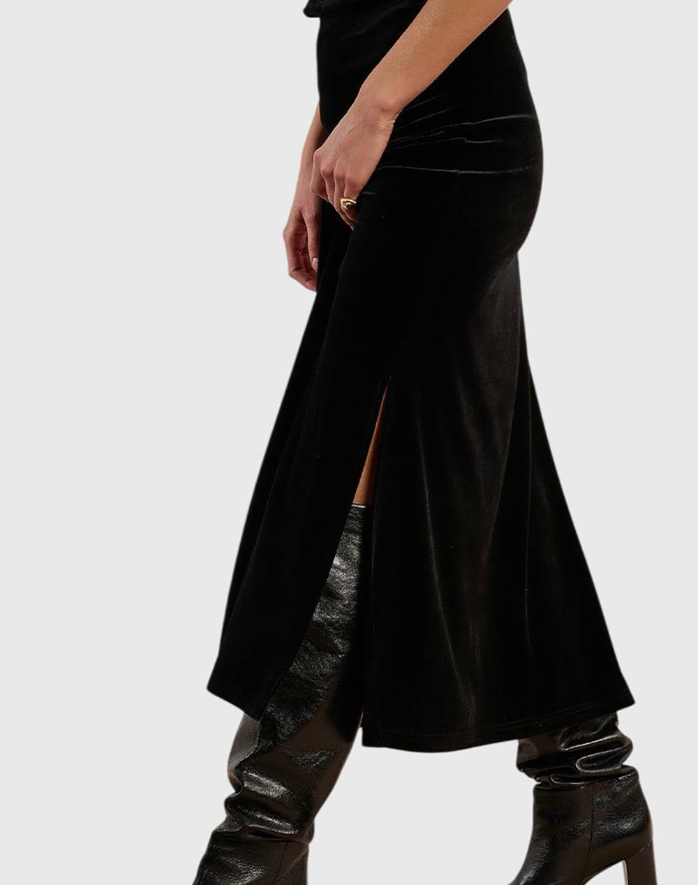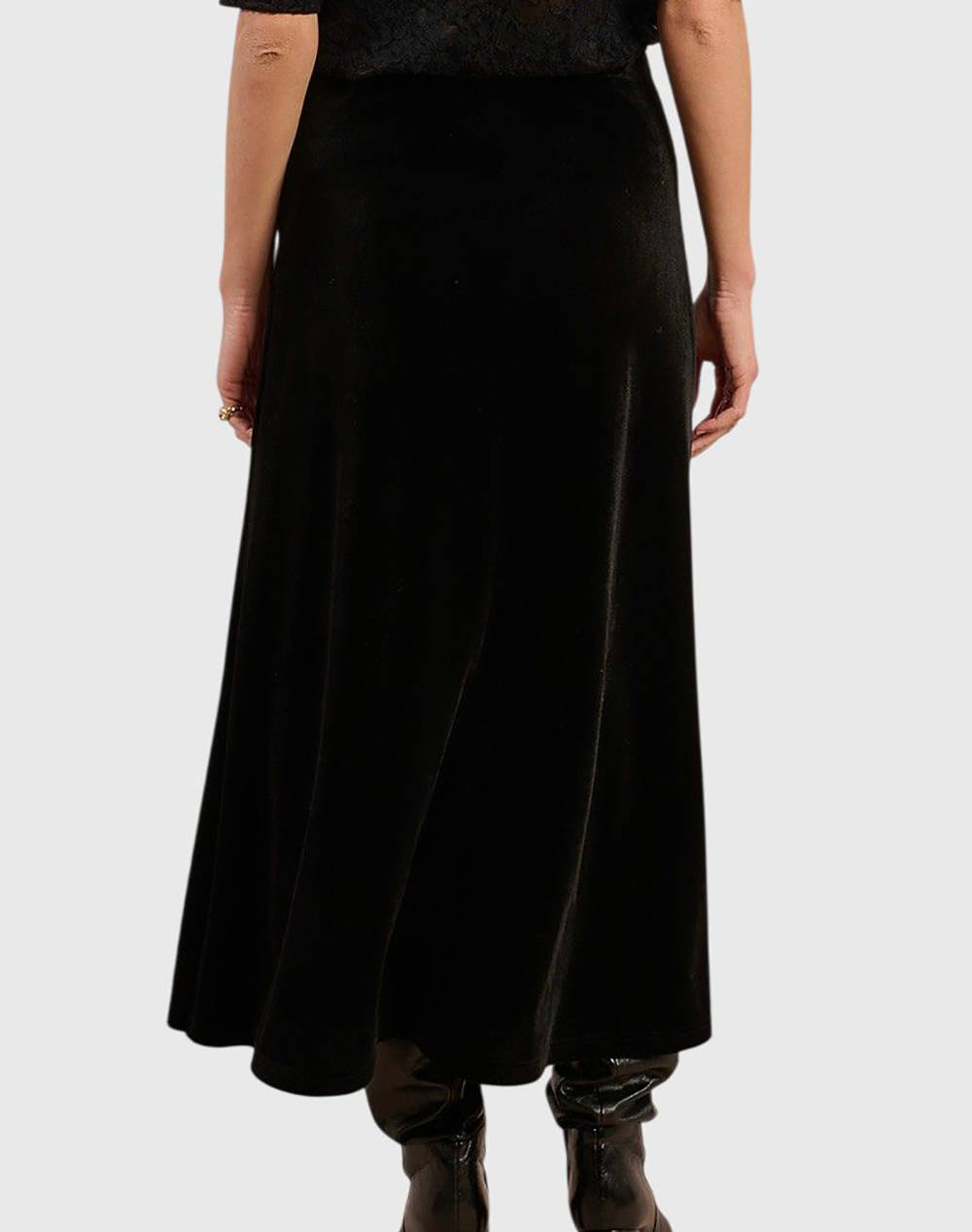 Γυναικεία μακριά φούστα, μονόχρωμη, με βελούδινη όψη και ελαστική μέση. (Σύνθεση: 92% Πολυεστέρας, 8% Ελαστάνη)