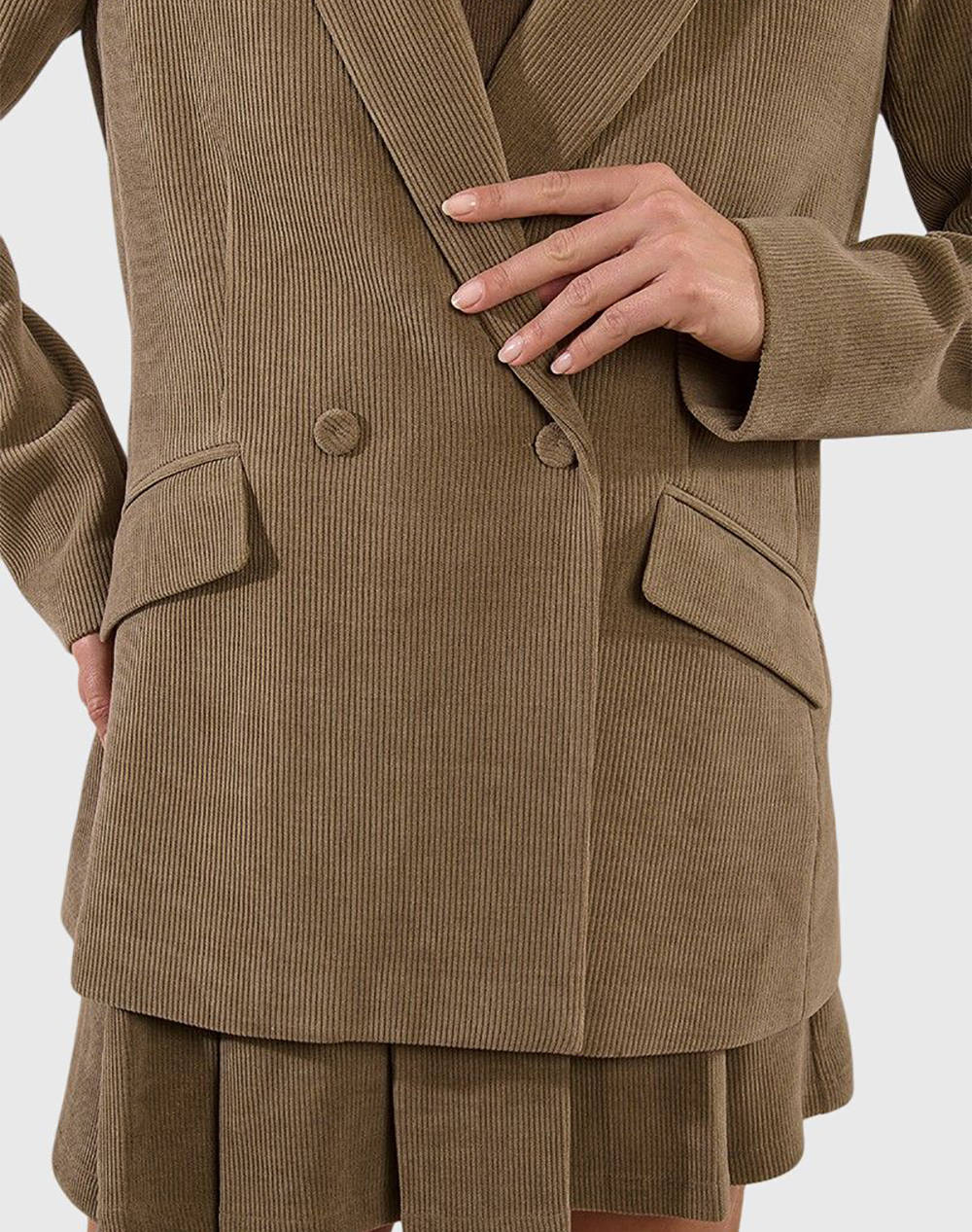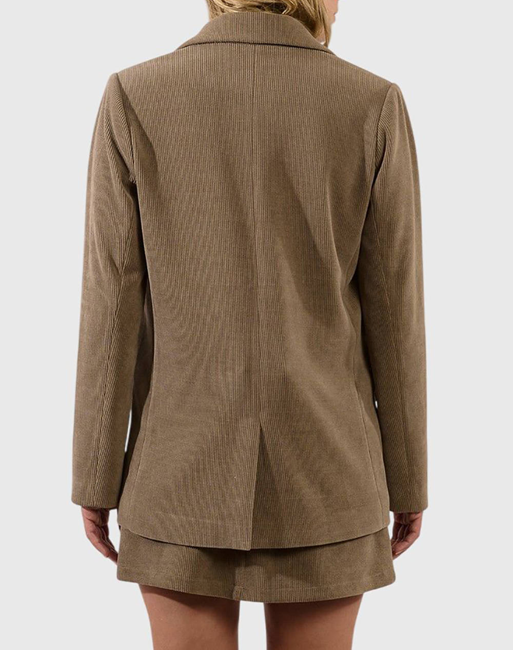 Γυναικείο σακάκι, σε ίσια μακριά γραμμή, μονόχρωμο, μακρυμάνικο, με βελούδινη όψη, τσέπες και κλείσιμο με κουμπιά. (Σύνθεση: 95% Πολυεστέρας, 5% Ελαστάνη)