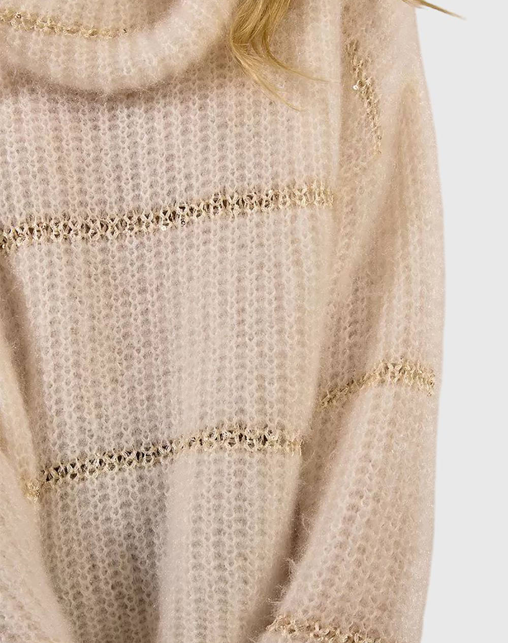 Γυναικείο πουλόβερ, oversized, ριγέ, μακρυμάνικο, με ζιβάγκο και παγιέτες. (Σύνθεση: 100% Πολυεστέρας)