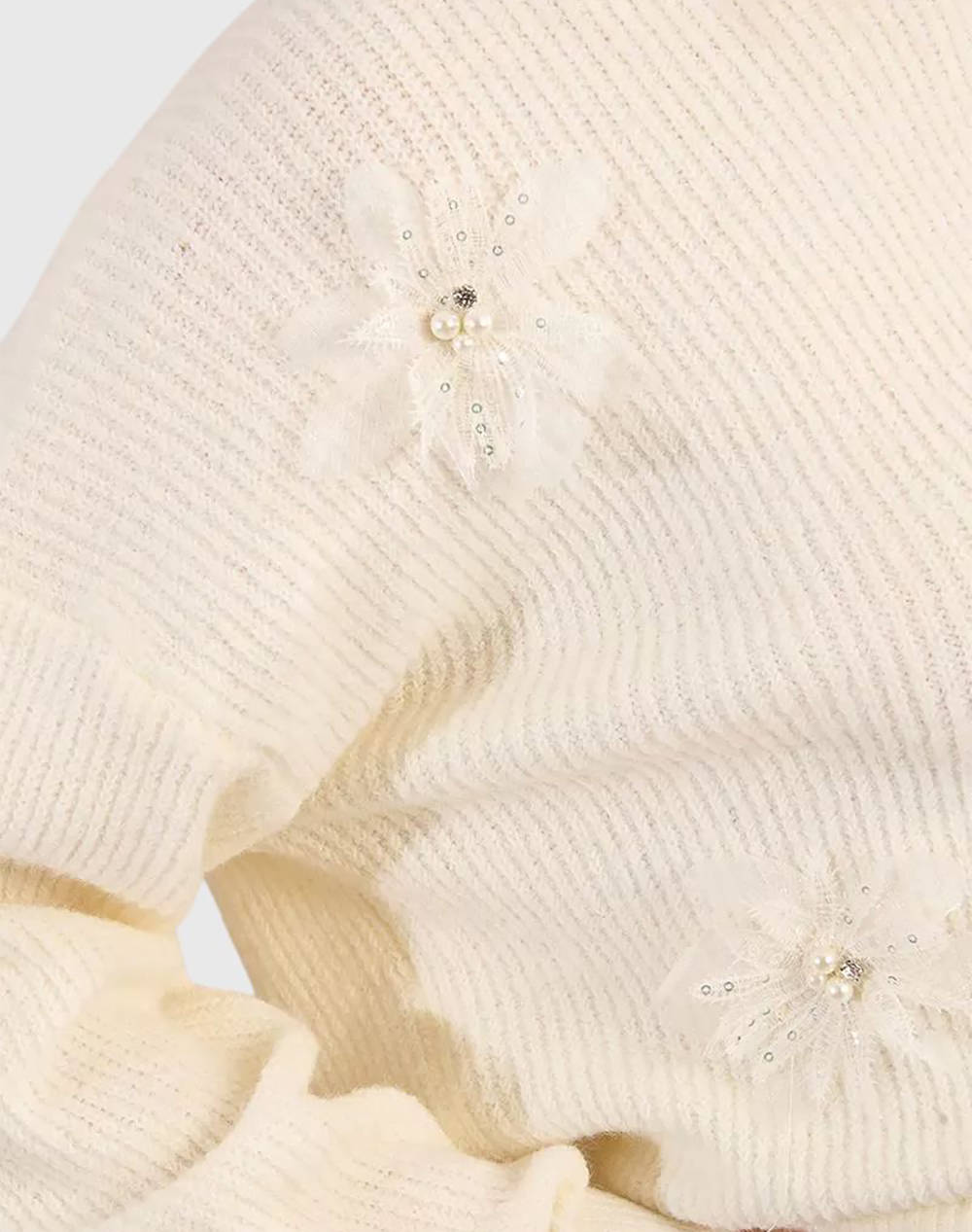 Γυναικείο πλεκτό πουλόβερ, σε κανονική γραμμή, μακρυμάνικο, με στρογγυλή λαιμόκοψη και σχέδιο με λουλούδια με χάντρες. (Σύνθεση: 74% Πολυεστέρας, 10% Ακρυλικό, 9% Πολυαμίδιο, 4% Μαλλί, 3% Ελαστάνη)