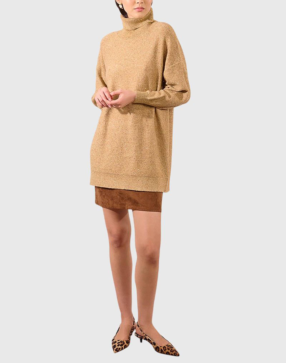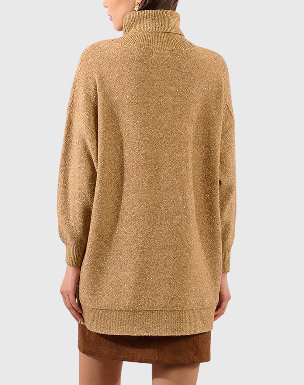 Γυναικεία πλεκτή μπλούζα, σε oversized ίσια γραμμή, μακρυμάνικη, με στράς, ζιβάγκο και ριμπ τελείωμα. (Σύνθεση: 57% Ακρυλικό, 40% Πολυεστέρας, 3% Ελαστάνη)