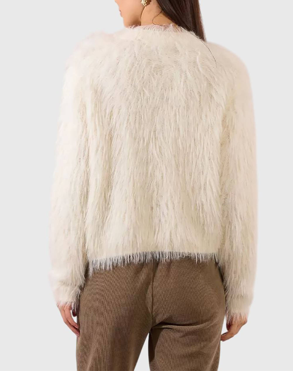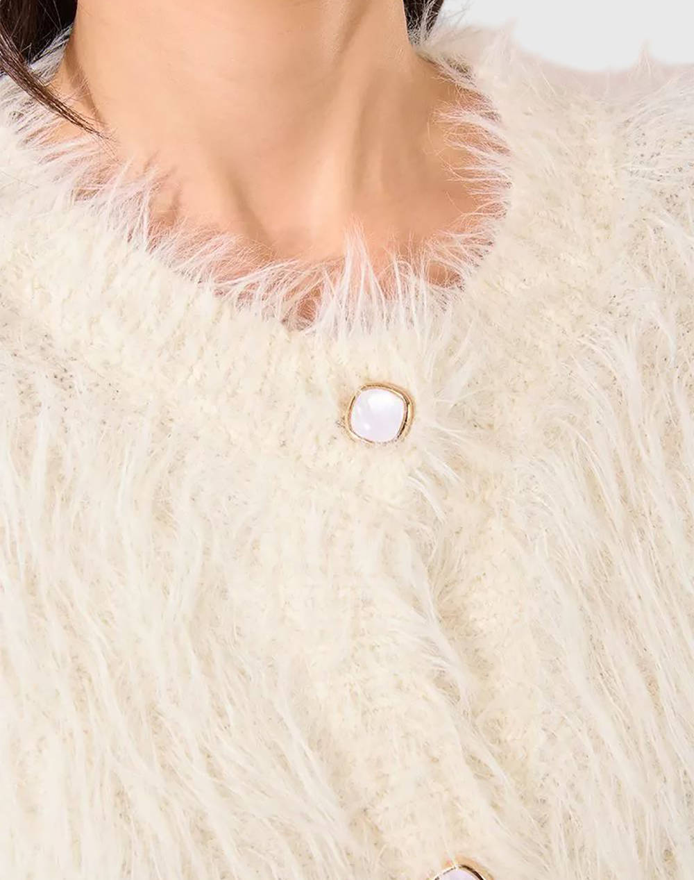 Γυναικεία πλεκτή ζακέτα, σε κανονική ίσια γραμμή, με στρογγυλή λαιμόκοψη, ανάγλυφη γούνα και κλείσιμο με κουμπιά μπροστά. (Σύνθεση: 88% Πολυαμίδιο, 7% Ακρυλικό, 5% Πολυεστέρας)