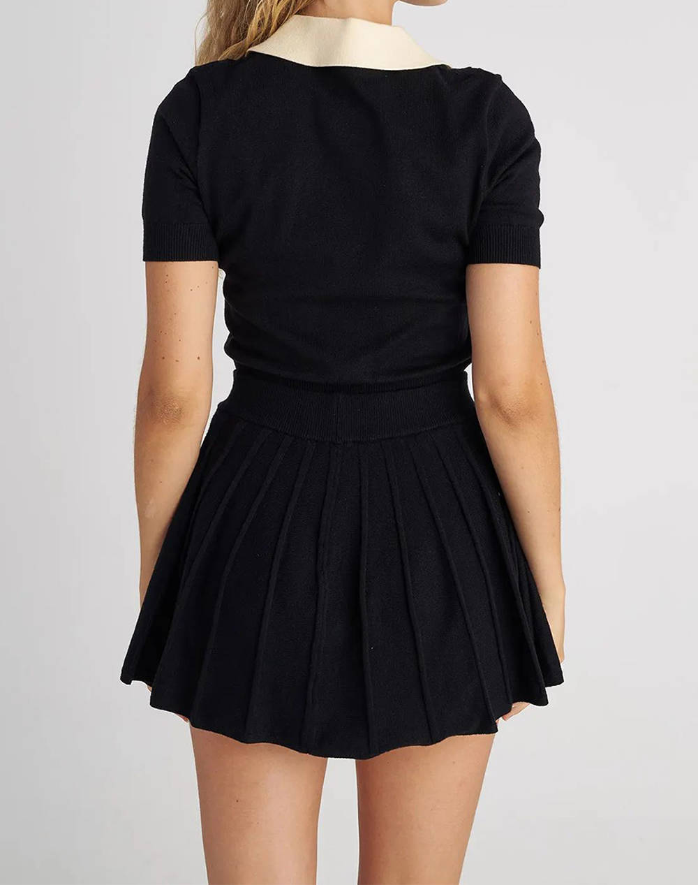 Γυναικεία πλεκτή μπλούζα, σε στενή γραμμή, κοντομάνικη, με γιακά πόλο σε αντίθεση, μπροστινά κουμπιά και ριμπ τελείωμα.(Σύνθεση: 50% Βισκόζη, 22% Πολυπροπυλένιο, 28% Πολυεστέρας)