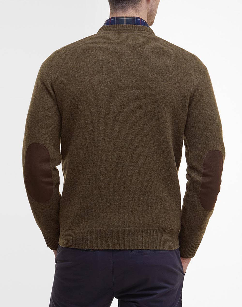 Ανδρικό πουλόβερ, σε κανονική γραμμή, μακρυμάνικο, με στρογγυλή λαιμόκοψη και δερμάτινα patch στους αγκώνες. (Σύνθεση: 100% Μαλλί)