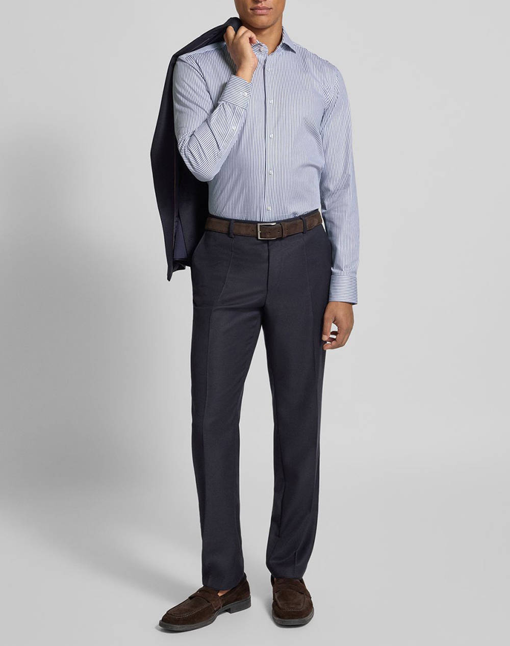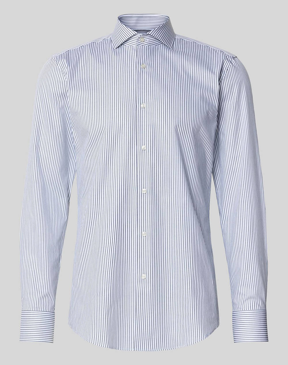 Ανδρικό πουκάμισο oxford, σε στενή γραμμή, μακρυμάνικο, με γιακά kent και με ριγέ μοτίβο. (Σύνθεση: 98% Βαμβάκι, 2% Ελαστάνη)