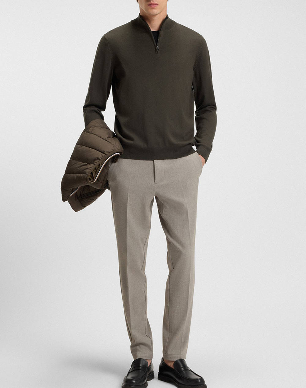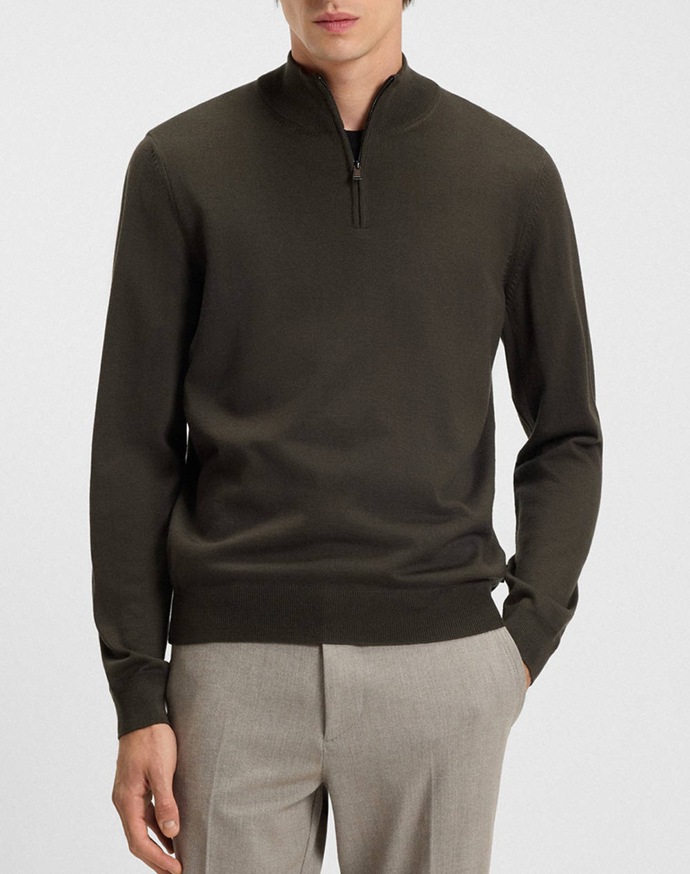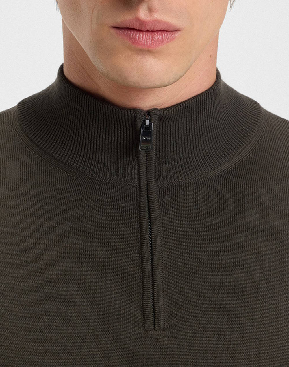 Ανδρικό πουλόβερ, σε κανονική γραμμή, μακρυμάνικο, με ψηλή λαιμόκοψη που κλείνει με μισό φερμουάρ. (Σύνθεση: 100% Φυσικό μαλλί)