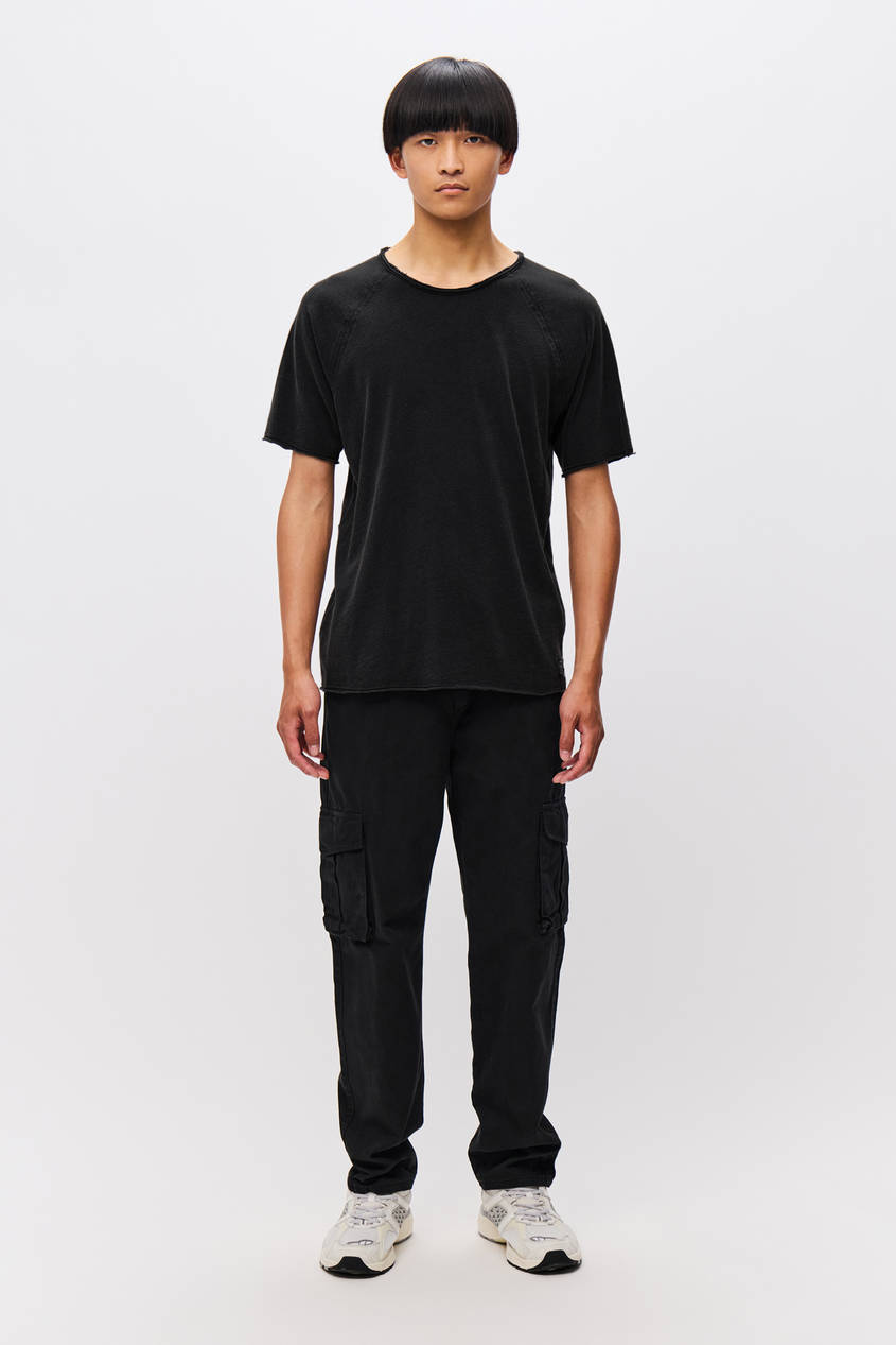 Ανδρικό t-shirt, σε κανονική γραμμή, με raglan κοντά μανίκια, στρογγυλή λαιμόκοψη και λεπτομέρειες με ξέφτι. (Σύνθεση: 100% Βαμβάκι)