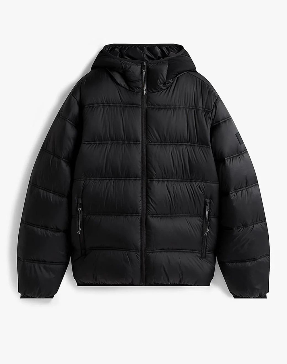 Ανδρικό puffer jacket από συνθετικό ύφασμα.