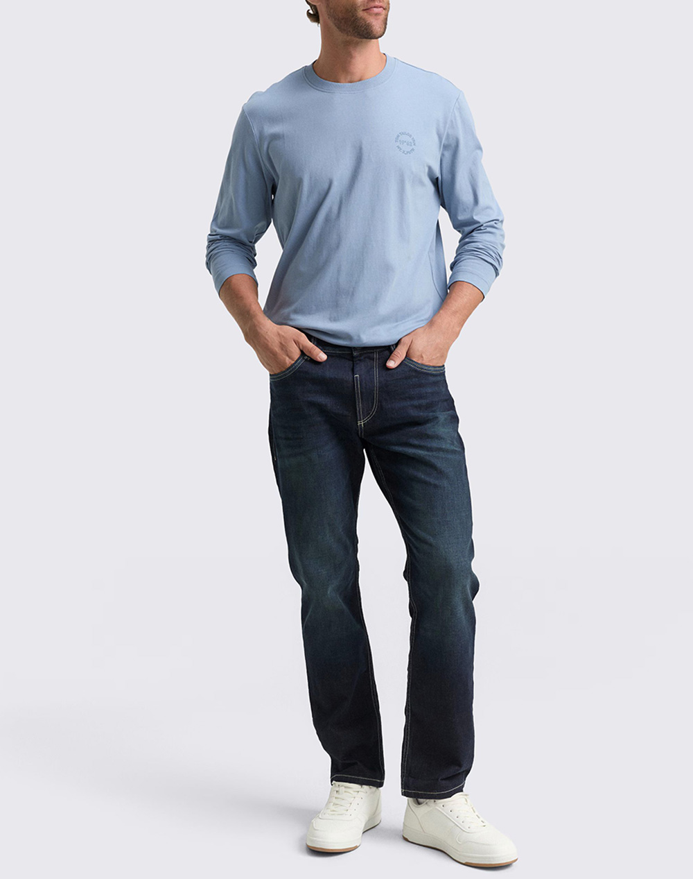 Ανδρικό t-shirt, σε κανονική, ίσια γραμμή, μακρυμάνικο, με στρογγυλή λαιμόκοψη και λεπτομέρεια λογότυπο μπροστά. (Σύνθεση: 100% Βαμβάκι)