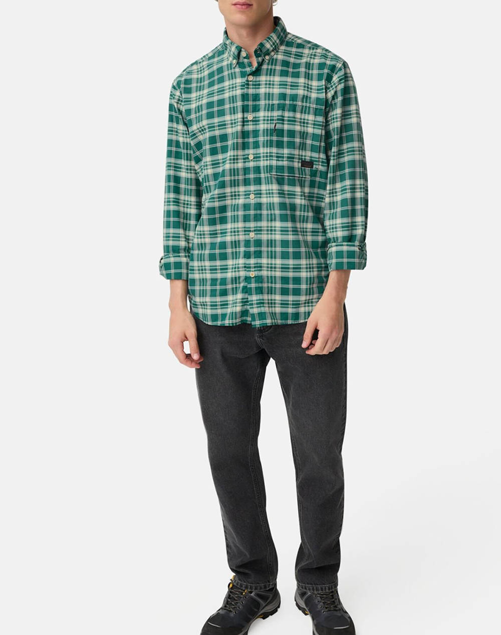 Ανδρικό καρό πουκάμισο, μακρυμάνικο, με botton down γιακά, τσέπη με φερμουάρ στο στήθος και κλείσιμο κουμπιά. (Σύνθεση: 100% Πολυαμίδιο)