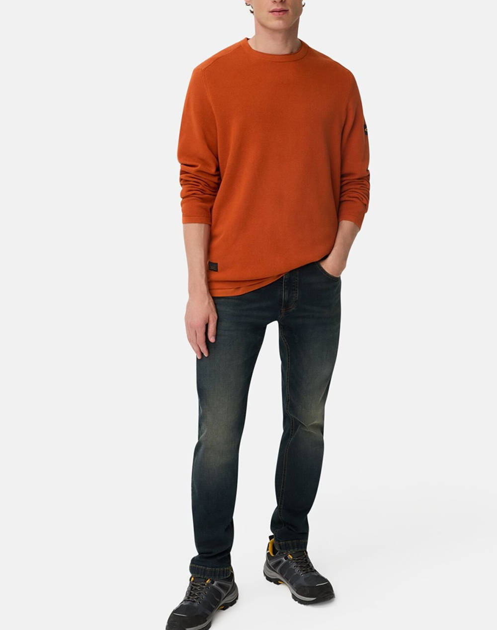 Ανδρικό πουλόβερ, μακρυμάνικο, με rib μανσέτες, στρογγυλή λαιμόκοψη και σημάνση λογότυπου στο μανίκι και στο τελείωμα. (Σύνθεση: 100% Βαμβάκι)
