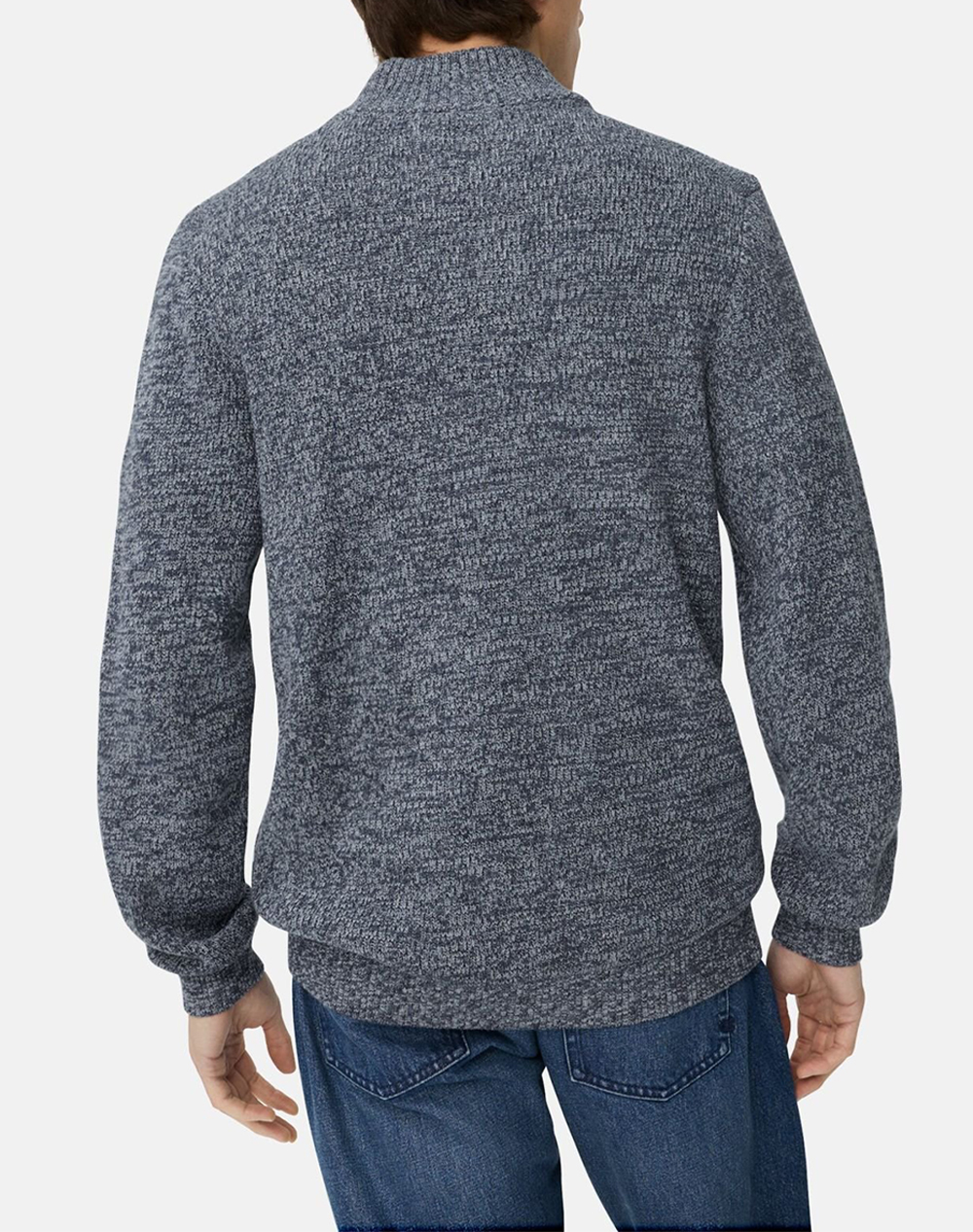 Ανδρικό πουλόβερ, σε άνετη γραμμή, μακρυμάνικο, με λαιμόκοψη Troyer, που κλείνει με φερμουάρ και rib άκρες. (Σύνθεση: 70% Βαμβάκι, 30% Ακρυλικό)