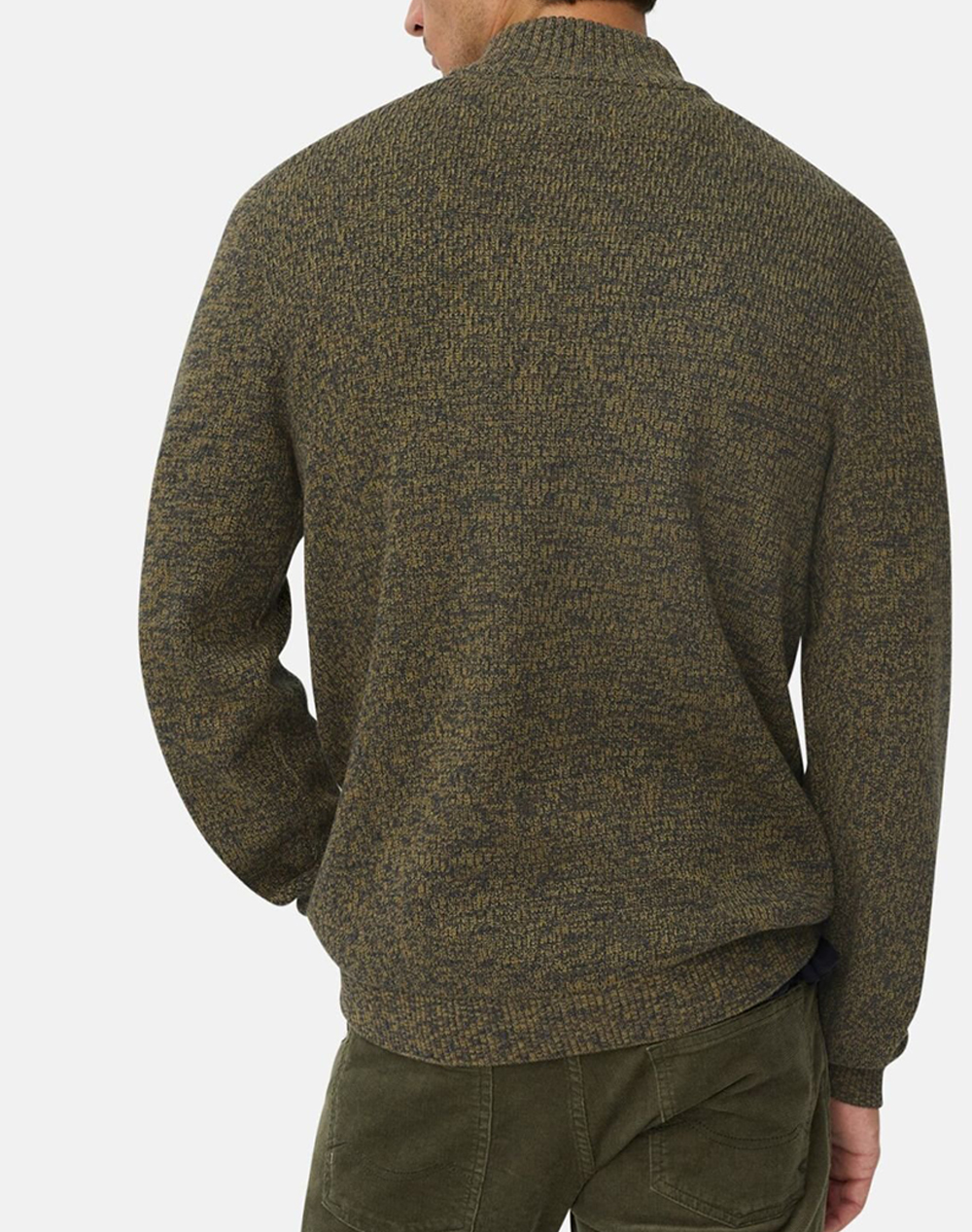 Ανδρικό πουλόβερ, σε άνετη γραμμή, μακρυμάνικο, με λαιμόκοψη Troyer, που κλείνει με φερμουάρ και rib άκρες. (Σύνθεση: 70% Βαμβάκι, 30% Ακρυλικό)