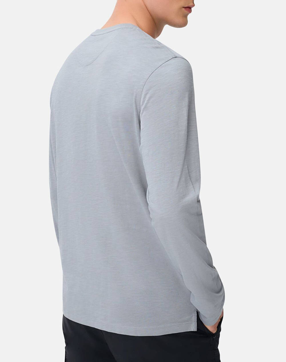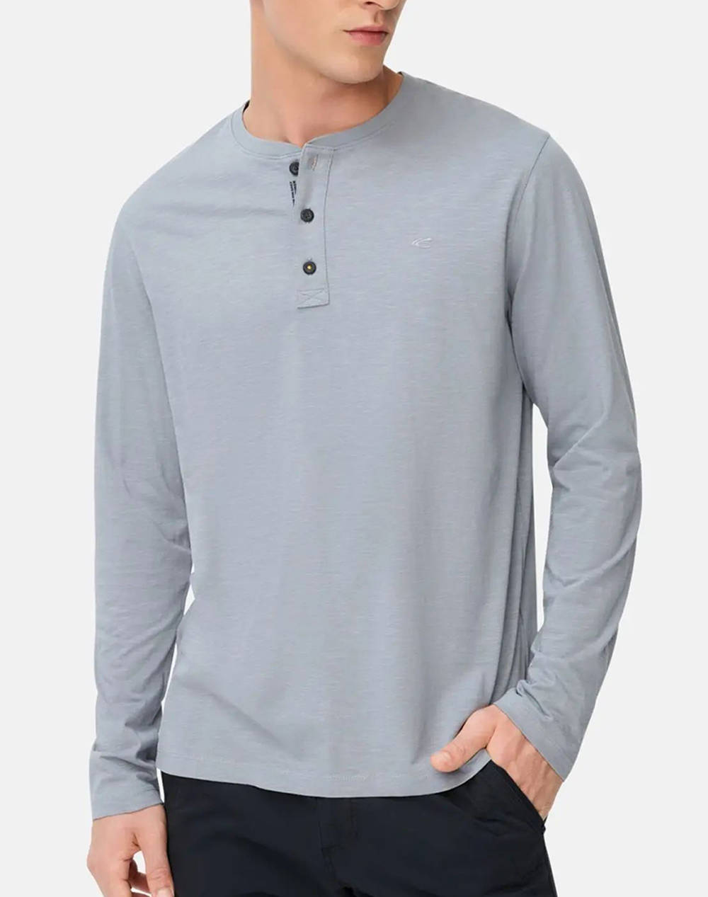 Ανδρικό t-shirt, σε κανονική γραμμή, μακρυμάνικο, με λαιμόκοψη Henley και ανοίγματα στα πλαϊνά. (Σύνθεση: 100% Βαμβάκι)