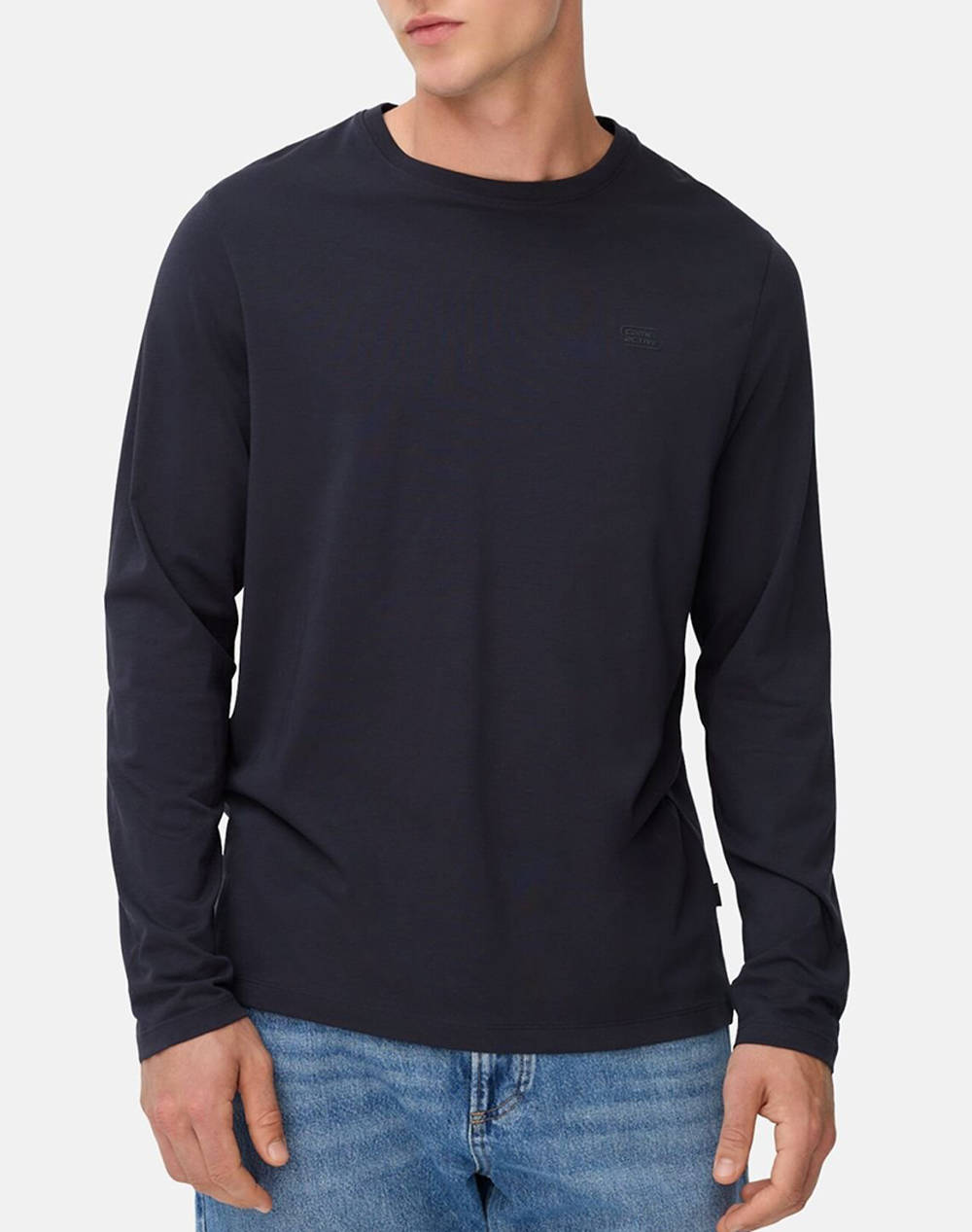 Ανδρικό t-shirt, σε κανονική γραμμή, μακρυμάνικο, με στρογγυλή λαιμόκοψη και ραμμένη ετικέτα λογότυπου στο πλάι. (Σύνθεση: 71% Βαμβάκι, 25% Πολυεστέρας, 4% Ελαστάνη)