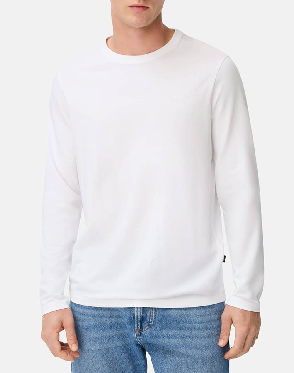 Ανδρικό t-shirt, σε κανονική γραμμή, μακρυμάνικο, με στρογγυλή λαιμόκοψη και ραμμένη ετικέτα λογότυπου στο πλάι. (Σύνθεση: 71% Βαμβάκι, 25% Πολυεστέρας, 4% Ελαστάνη)