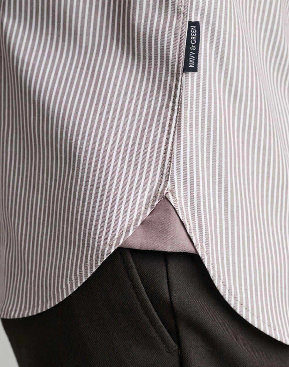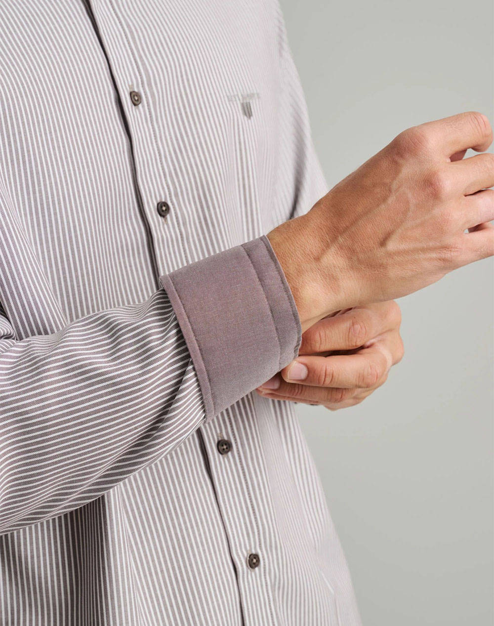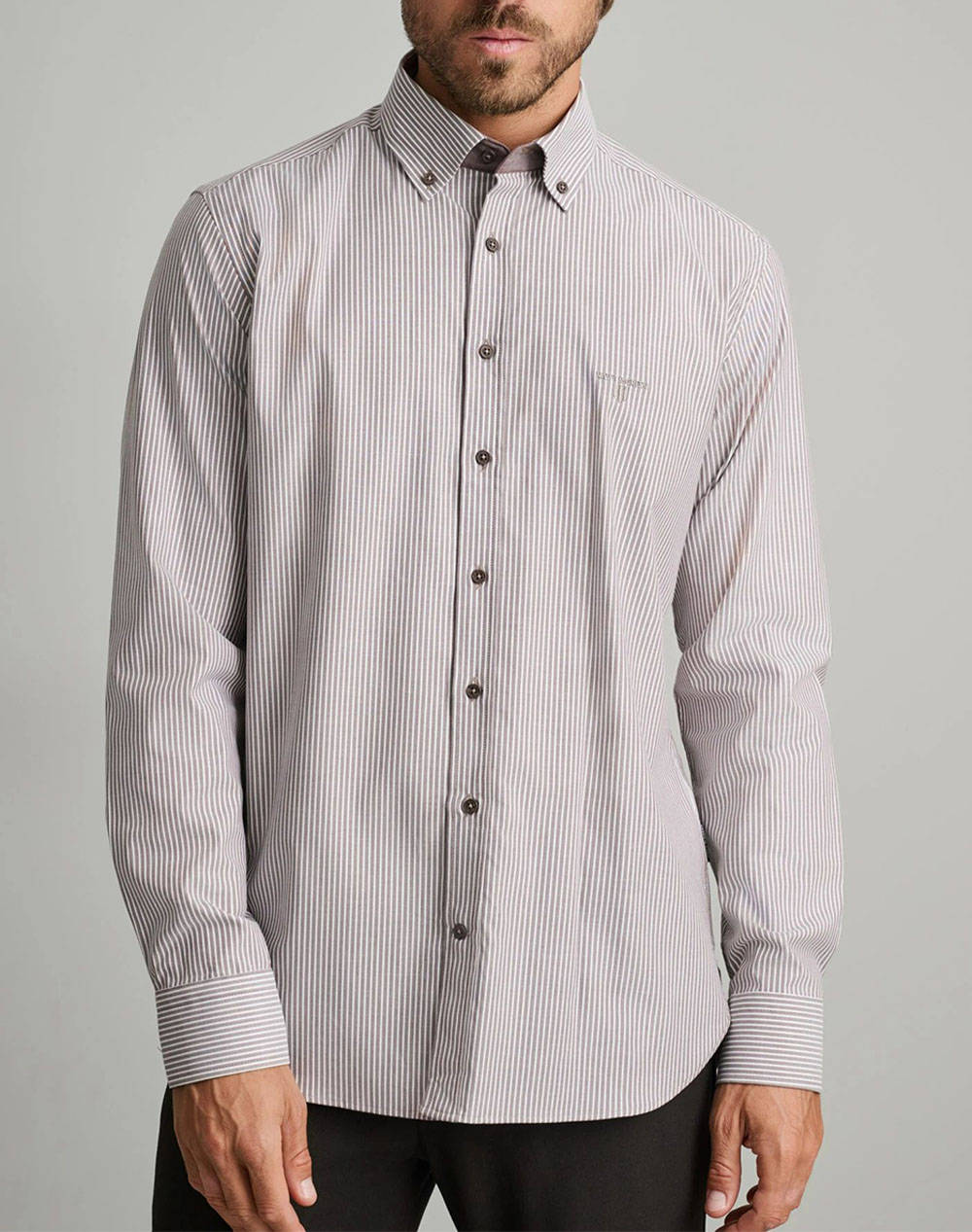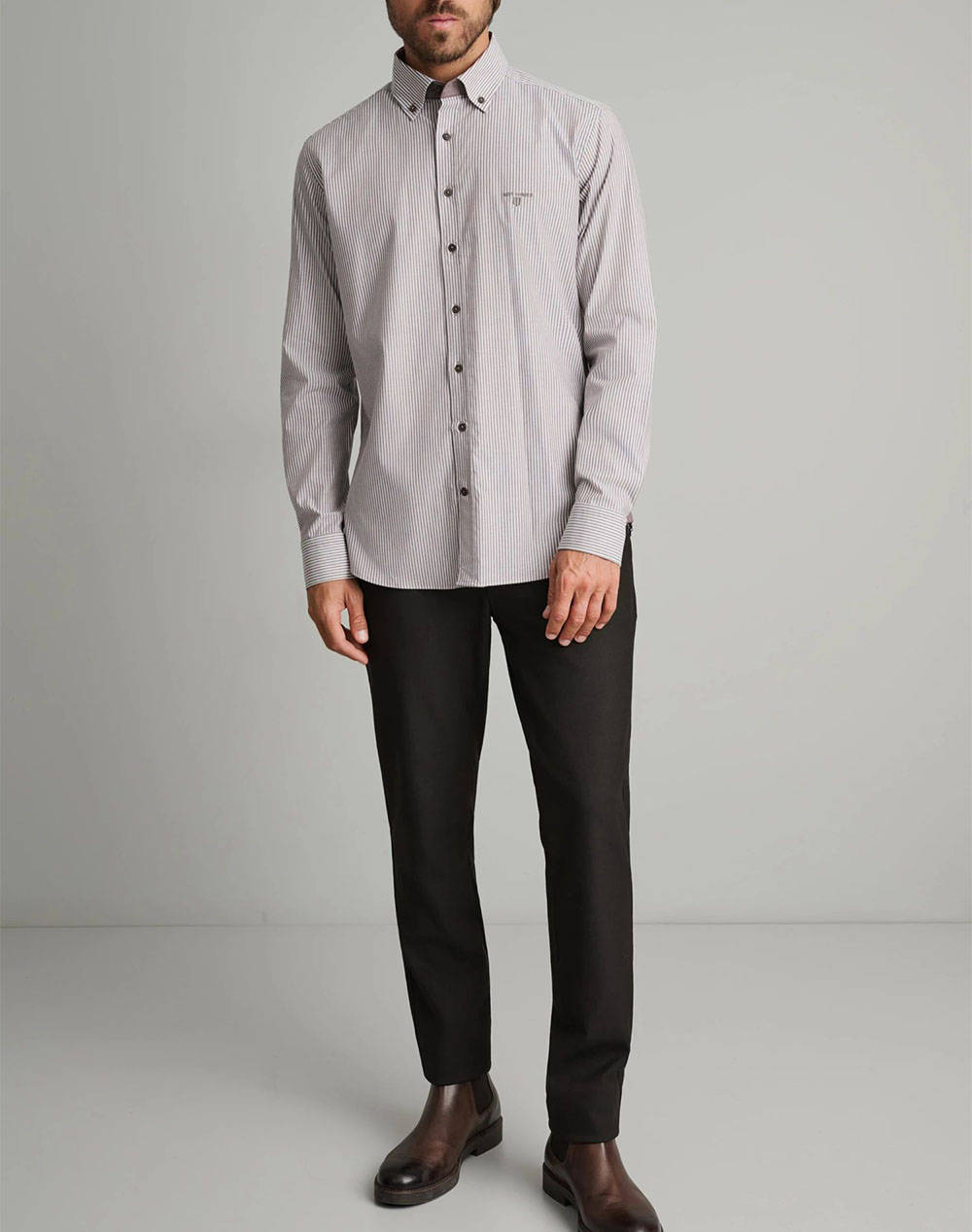 Ανδρικό πουκάμισο, σε κανονική γραμμή, μακρυμάνικο, με ριγέ μοτίβο, button down γιακά και κλείσιμο με κουμπιά.(Σύνθεση: 95%Βαμβάκι, 5% Ειδικό ελαστικό νήμα)