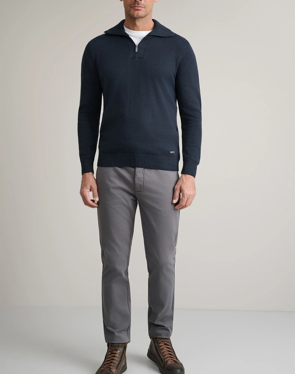 Ανδρική πλεκτή μπλούζα, σε κανονική γραμμή, μακρυμάνικη, με halfzip και γιακά τύπου polo. (Σύνθεση: 100% Βαμβάκι)
