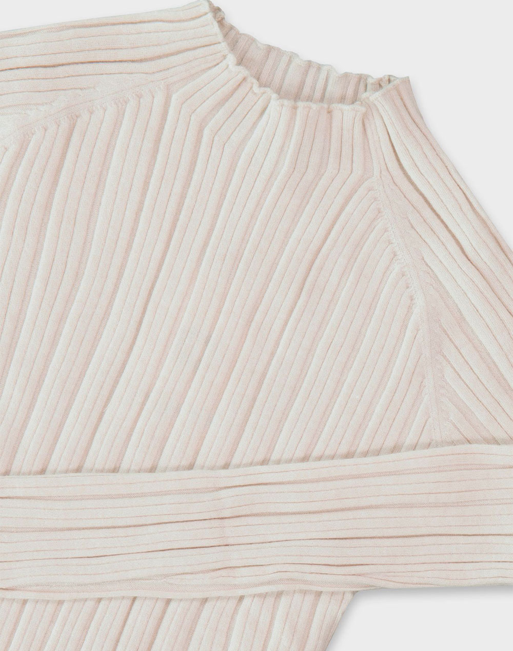 Παιδική μπλούζα πλεκτή, μονόχρωμη, μακρυμάνικη και με ψηλή λαιμόκοψη.(Σύνθεση: 52% Βισκόζη, 26% Πολυεστέρας, 22% Πολυαμίδη)