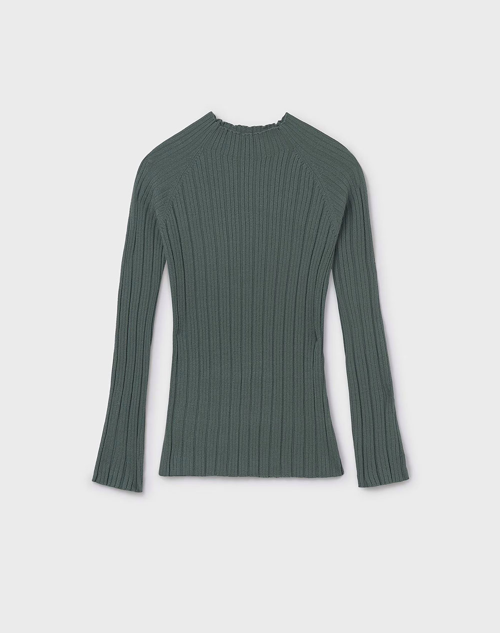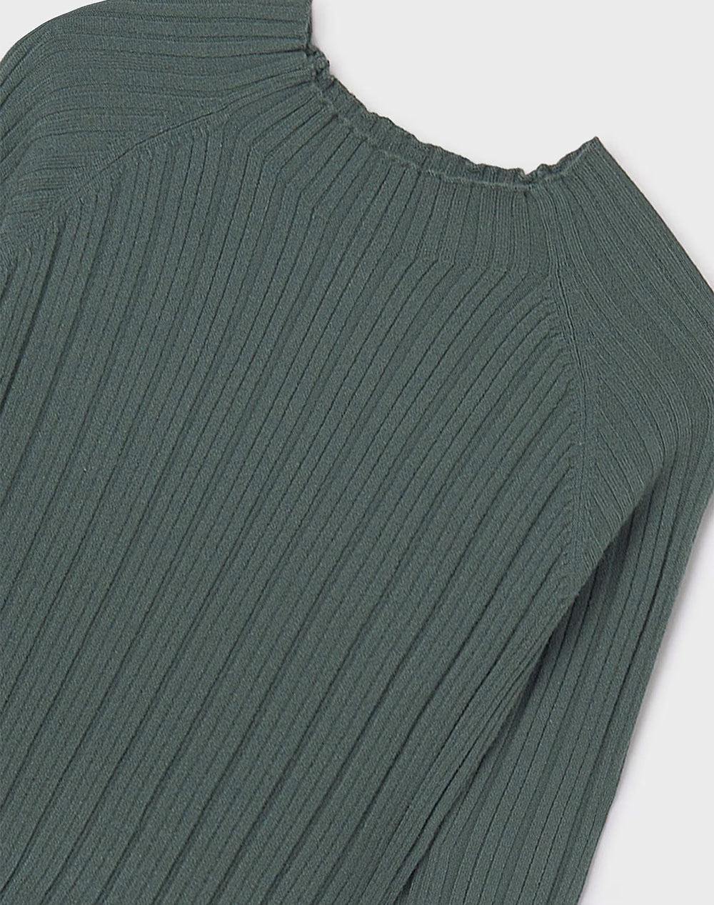 Παιδική μπλούζα πλεκτή, μονόχρωμη, μακρυμάνικη και με ψηλή λαιμόκοψη.(Σύνθεση: 52% Βισκόζη, 26% Πολυεστέρας, 22% Πολυαμίδη)