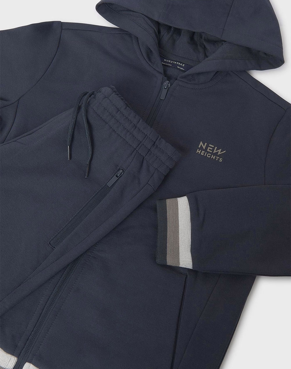 Παιδικό σετ φόρμας, με μακρυμάνικη, μονόχρωμη ζακέτα, με κουκούλα, τσέπες και φερμουάρ και μονόχρωμο παντελόνι, με τσέπες, ελαστική μέση και κορδόνι περίσφυξης. (Σύνθεση: 51% Πολυεστέρας, 48% Βαμβάκι, 1% Ελαστομερής πολυουρεθάνη & 59% Βαμβάκι, 40% Πολυεστέρας, 1% Ελαστομερής πολυουρεθάνη)
