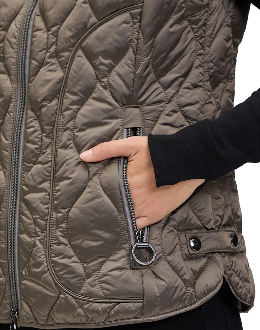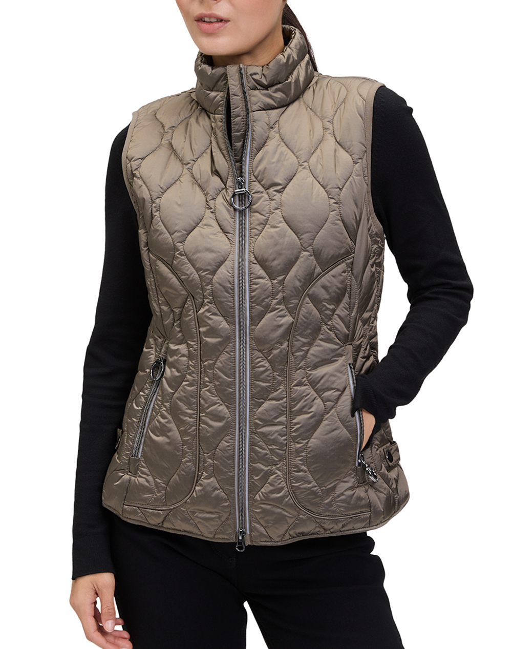 Γυναικείο αμάνικο μπουφάν, σε κανονική γραμμή, με καπιτονέ σχέδιο, τσέπες στο πλάι, ψηλό λαιμό και κλείσιμο με φερμουάρ. (Σύνθεση: 100% Πολυαμίδιο)