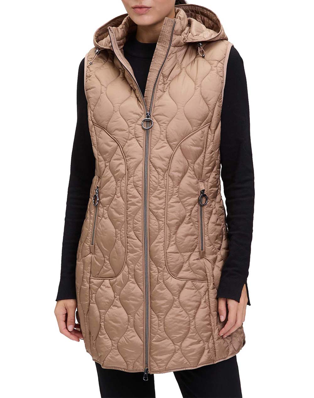 Γυναικείο αμάνικο μπουφάν, σε στενή γραμμή, με καπιτονέ σχέδιο, πλαϊνές τσέπες και κλείσιμο με φερμουάρ. (Σύνθεση: 100% Πολυαμίδιο)