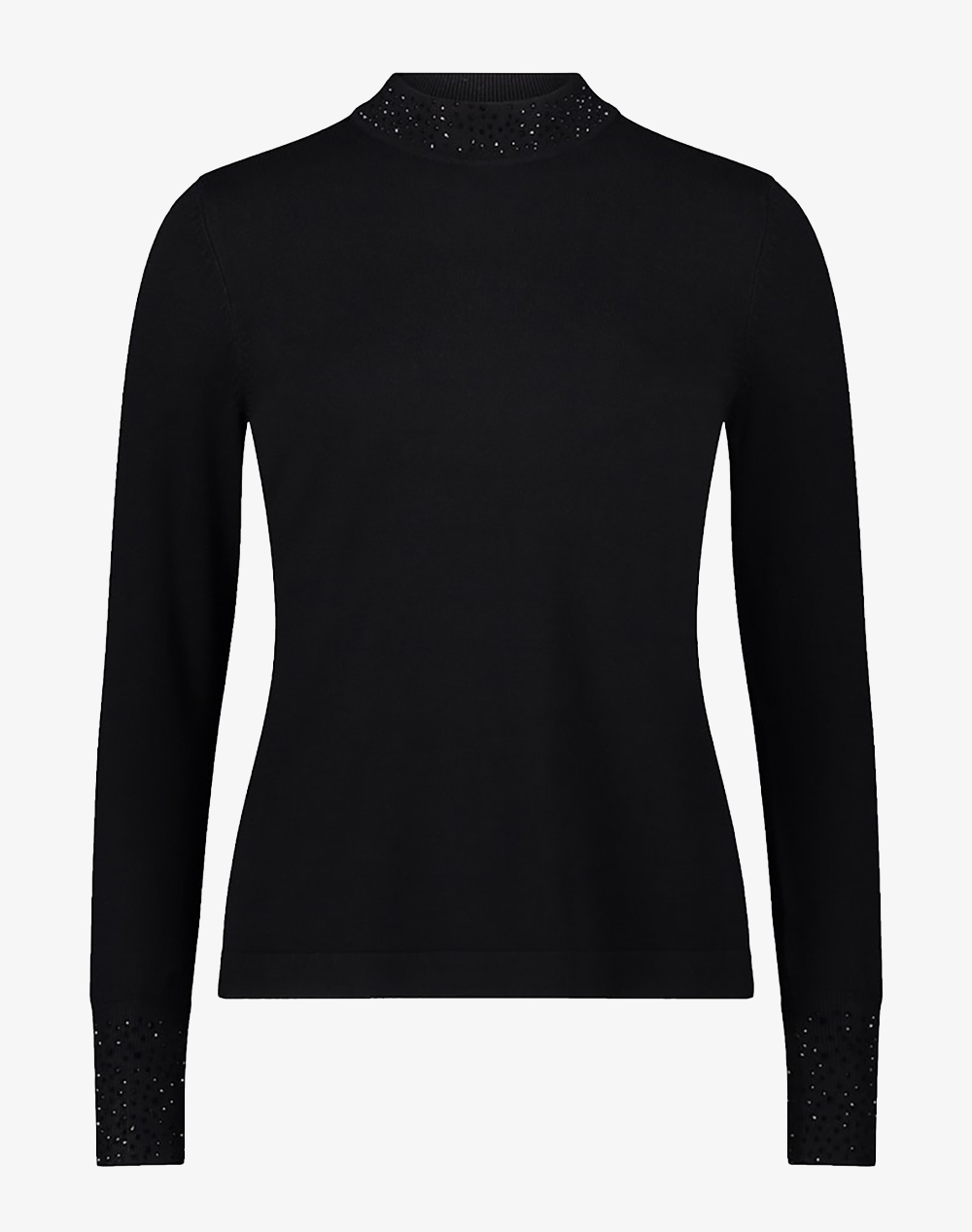 Γυναικείο πουλόβερ, σε εφαρμοστή γραμμή, μακρυμάνικο, με ψηλή λαιμόκοψη και strass λεπτομέρειες. (Σύνθεση: 72% Βισκόζη, 28% Πολυαμίδιο)