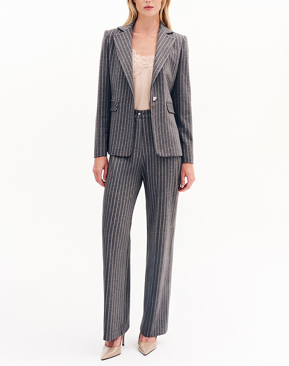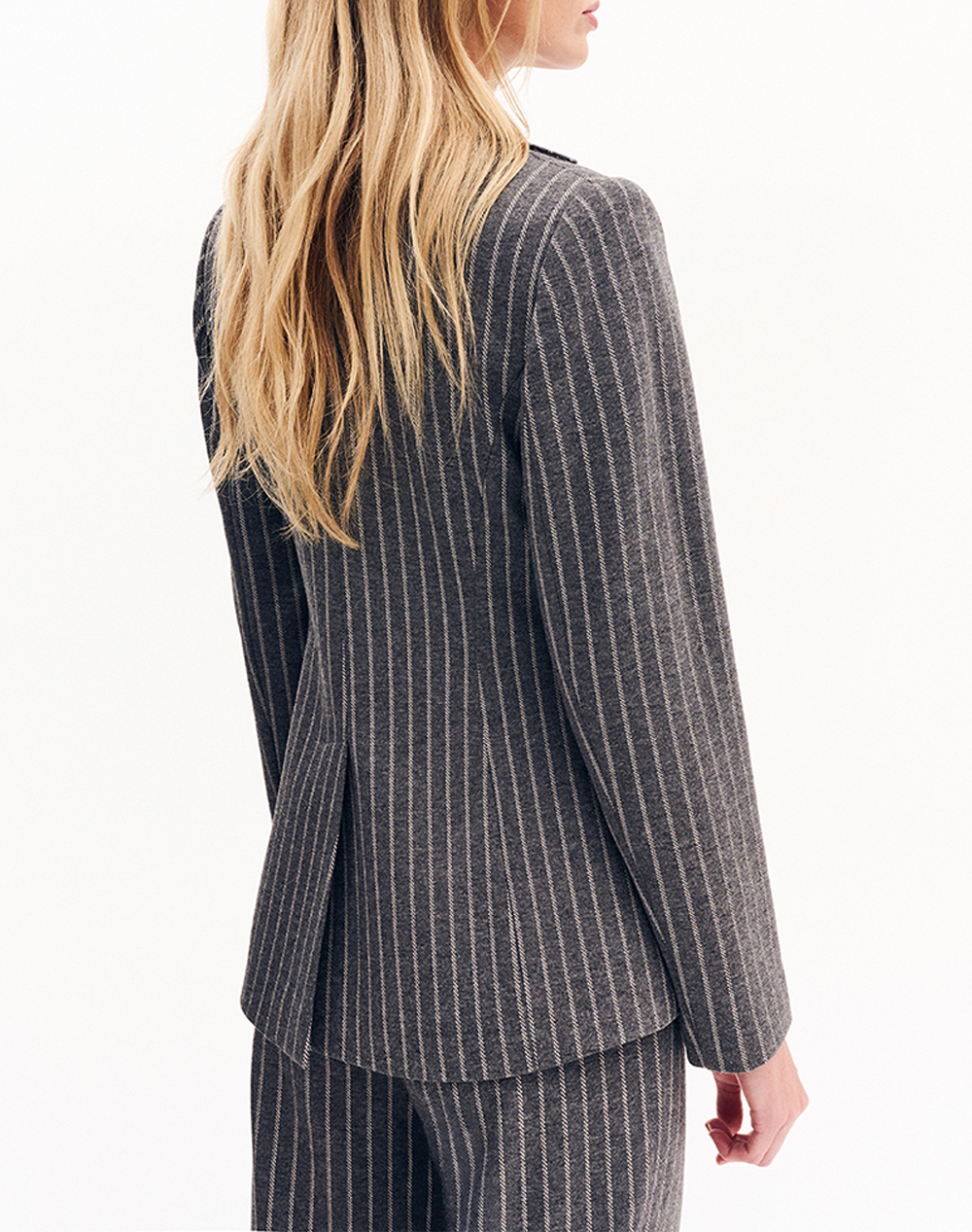 Γυναικείο ριγέ σακάκι από σύμμεικτο ύφασμα βισκόζης.